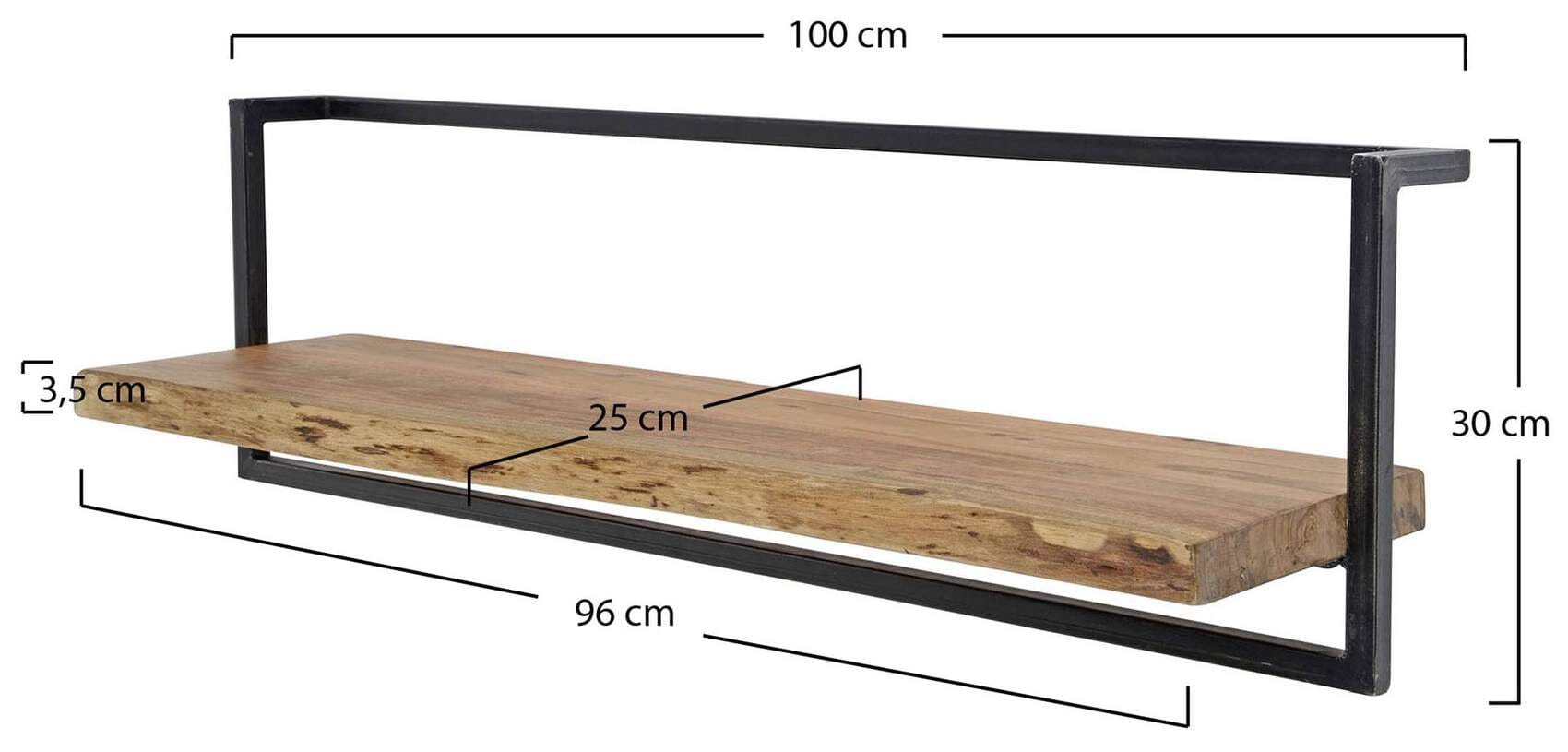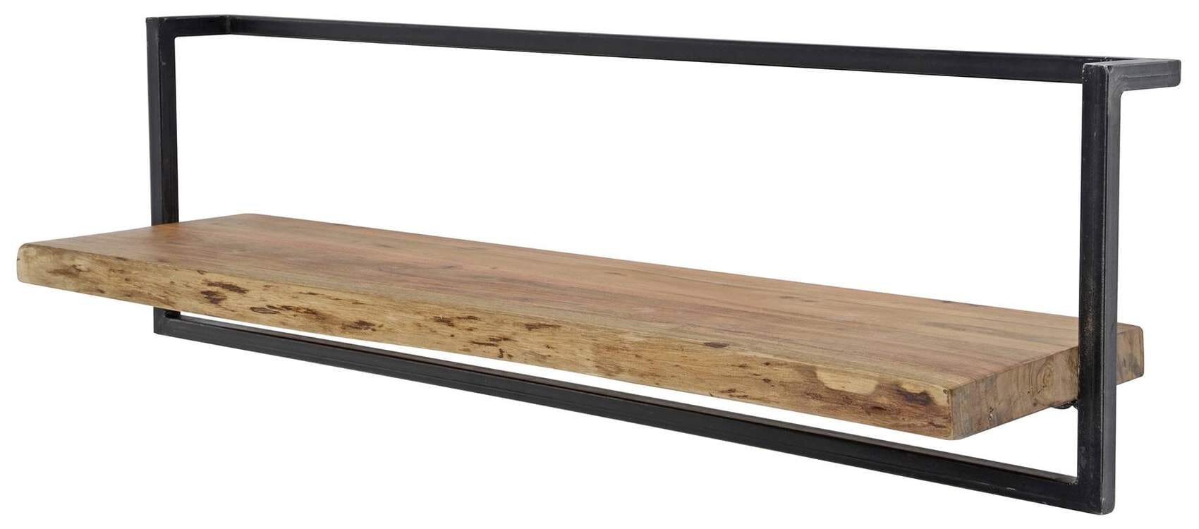 Wandregal KANT 100 cm, Stahlrahmen schwarz und Akazie lackiert mit Baumkante