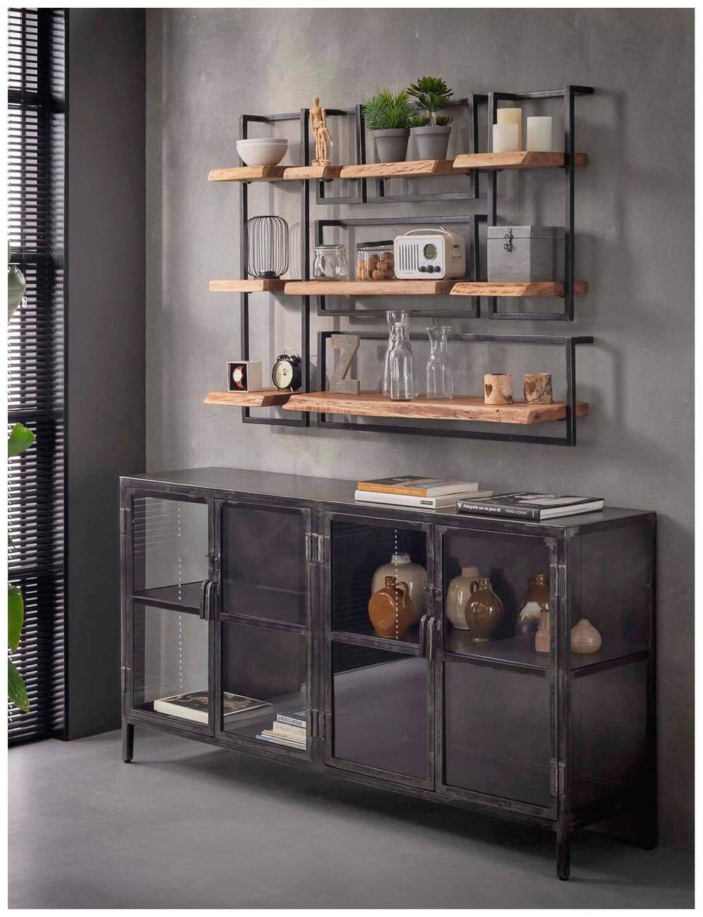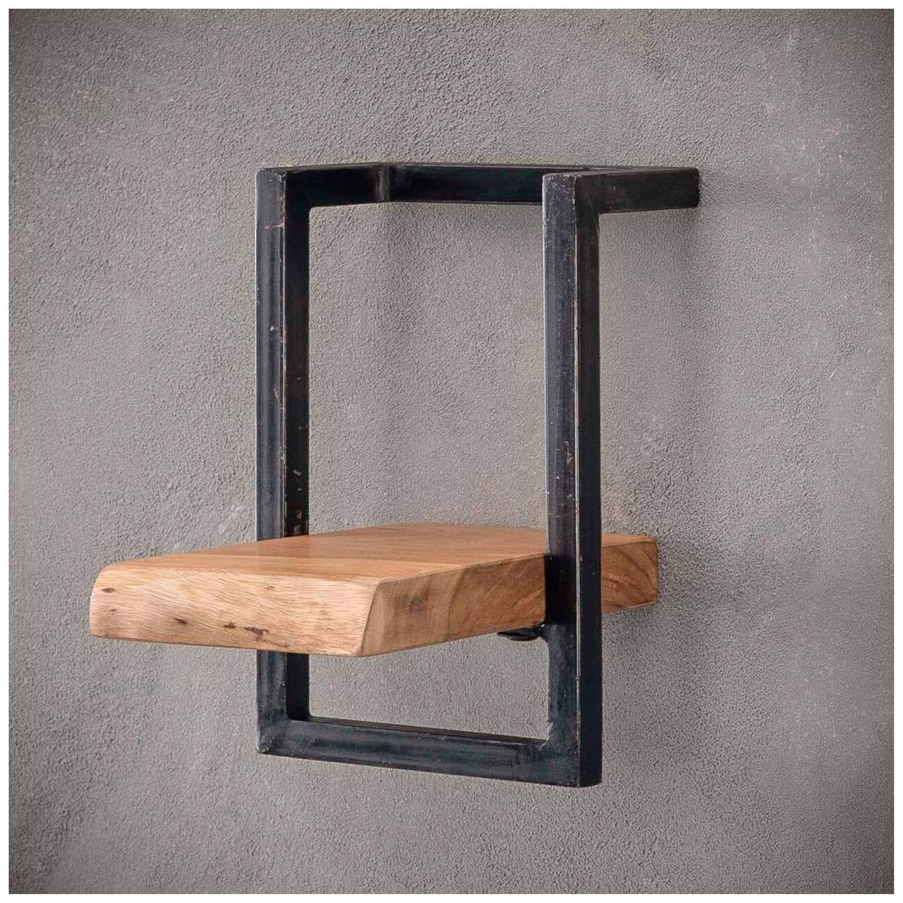 Wandregal KANT 20 cm Stahlrahmen und massive Akazie mit Baumkante