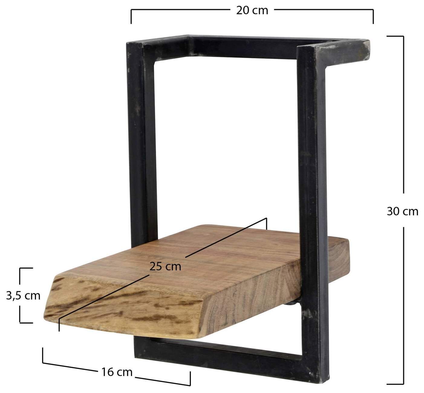 Wandregal KANT 20 cm, Stahlrahmen schwarz und Akazie lackiert mit Baumkante