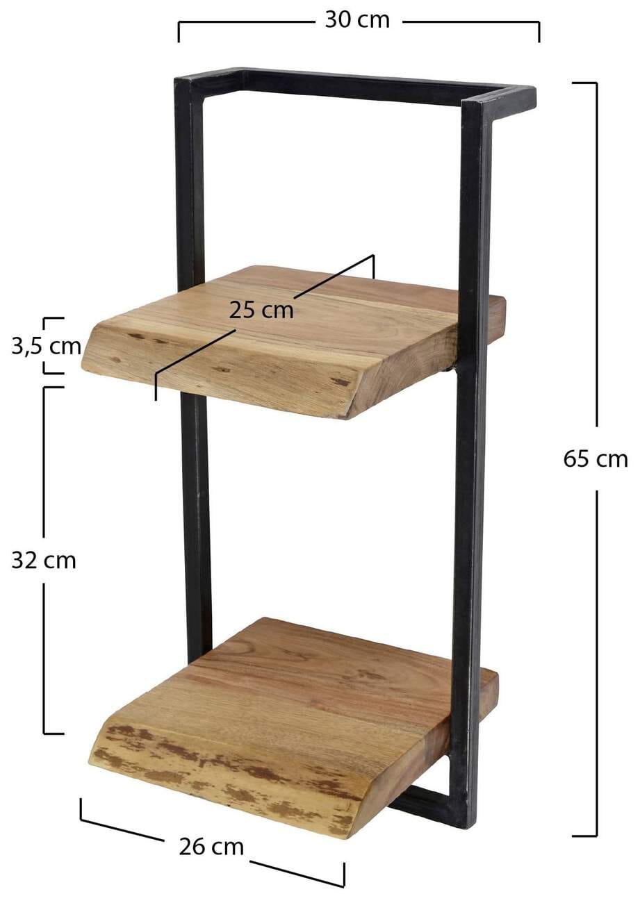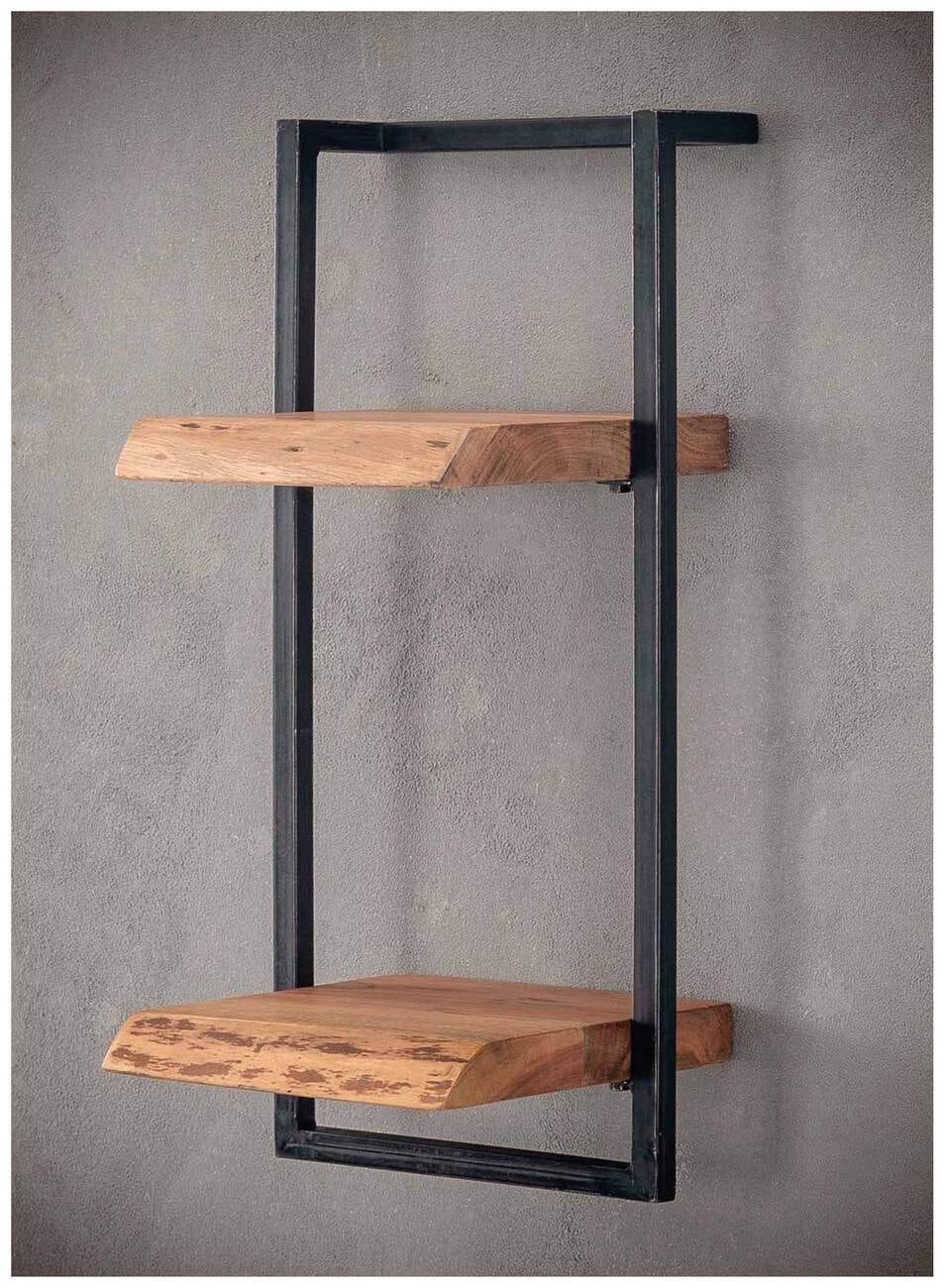 Wandregal KANT Double, mit 2 Ablagen Stahlrahmen Akazie mit Baumkante