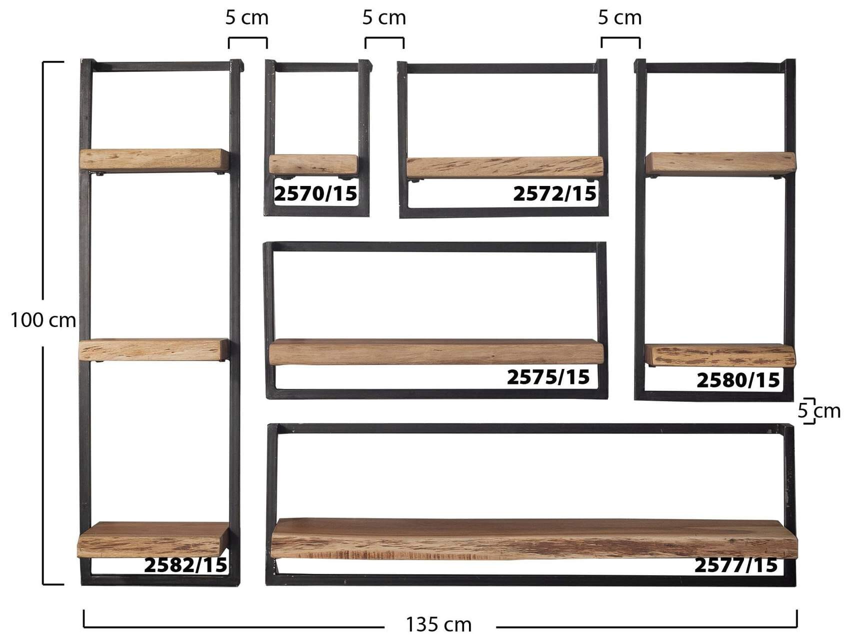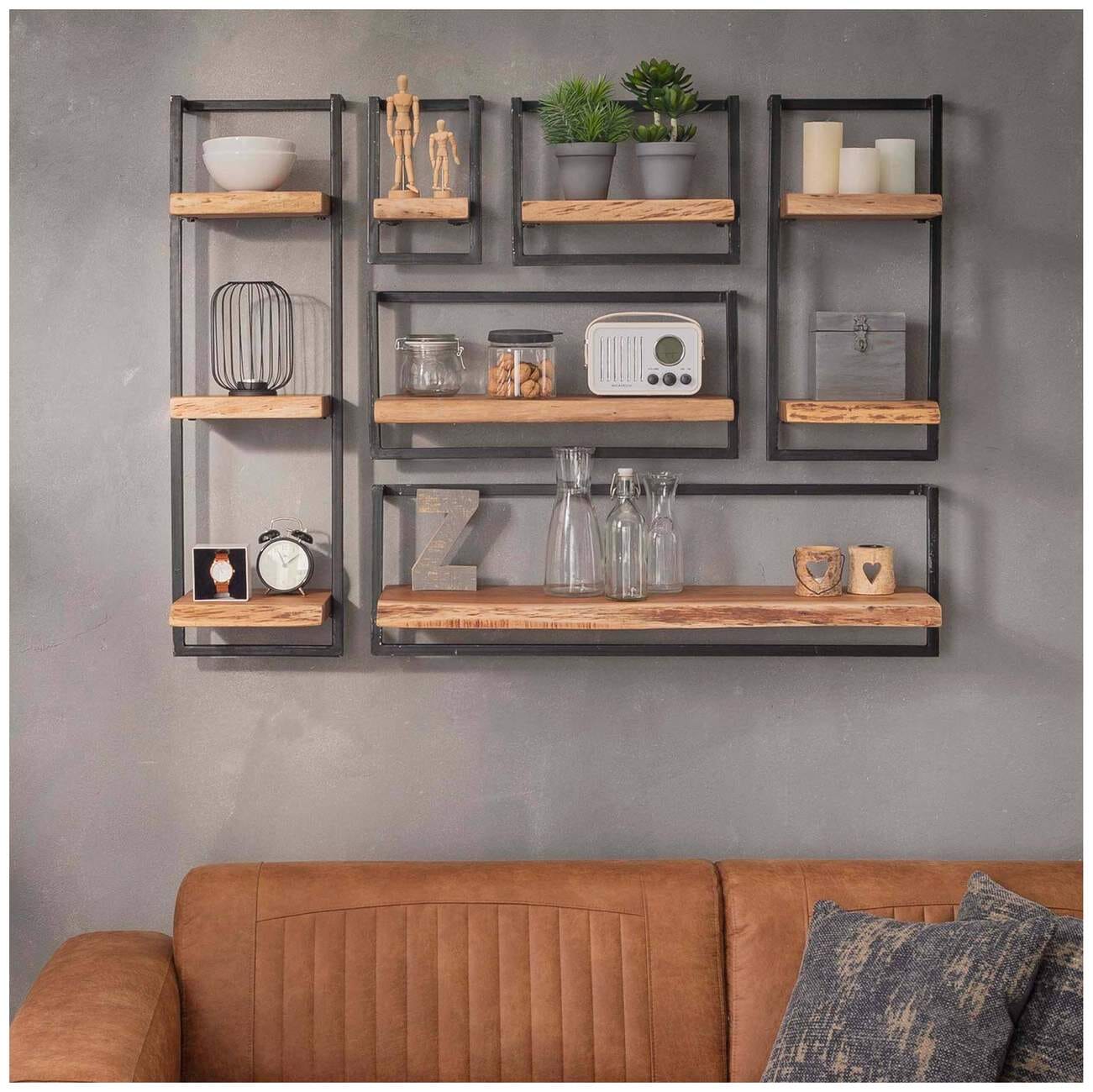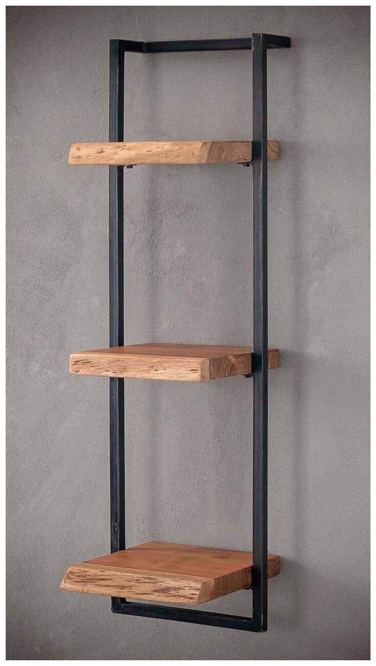 Wandregal KANT Triple, mit 3 Ablagen Stahlrahmen Akazie mit Baumkante