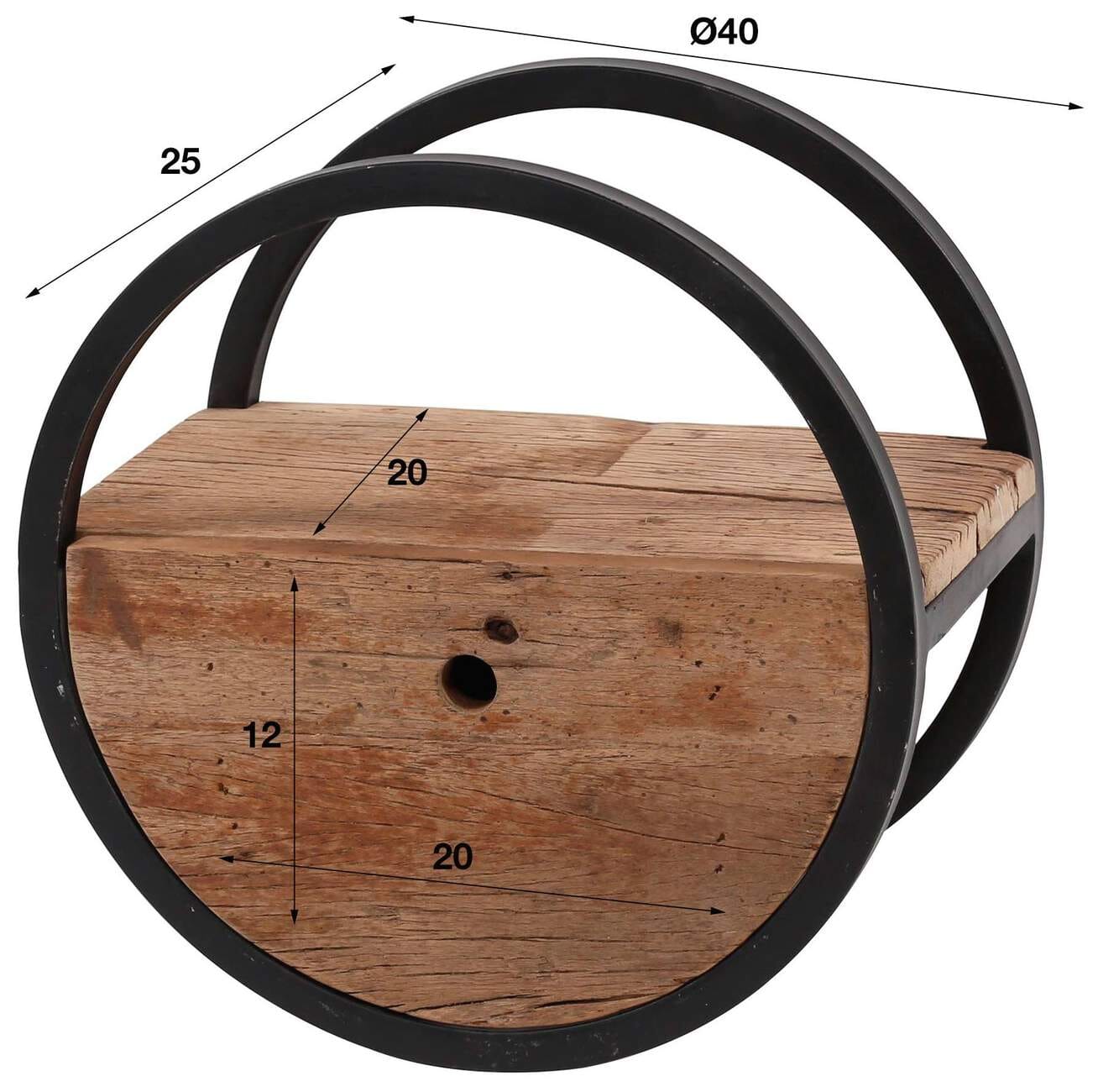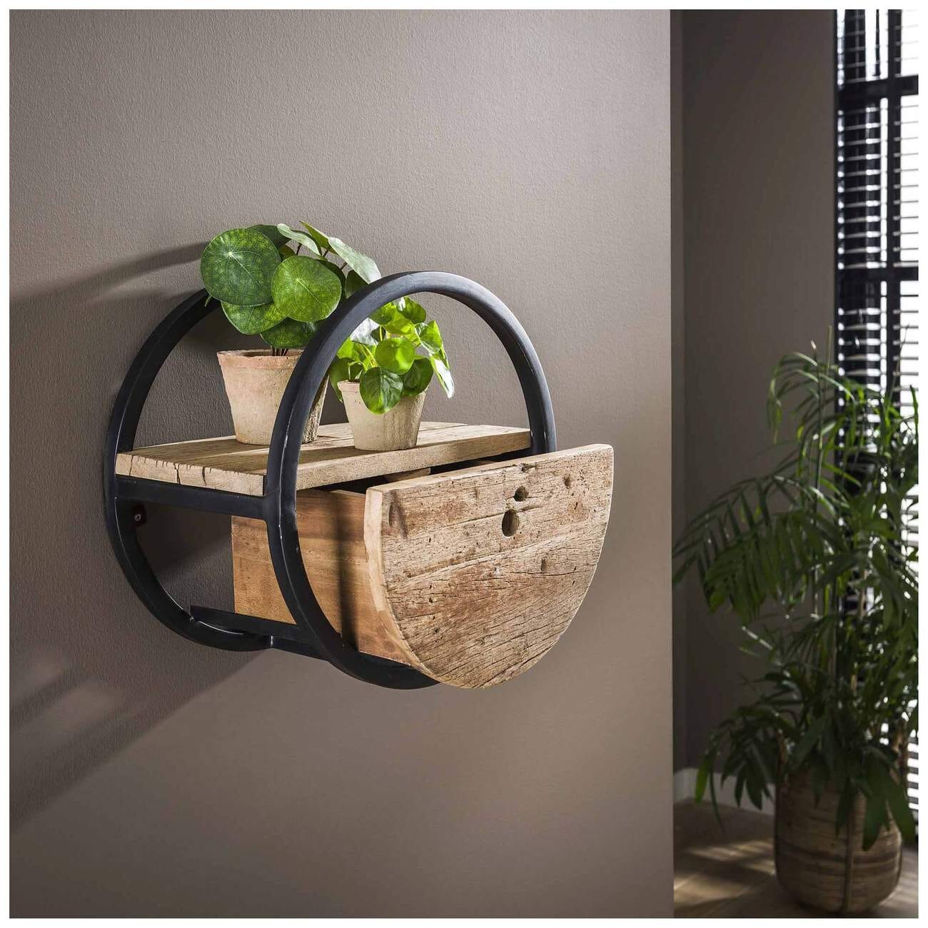 Wandregal OUD, 40 cm, rund Stahlrahmen Hartholz Altholz mit Schubladee