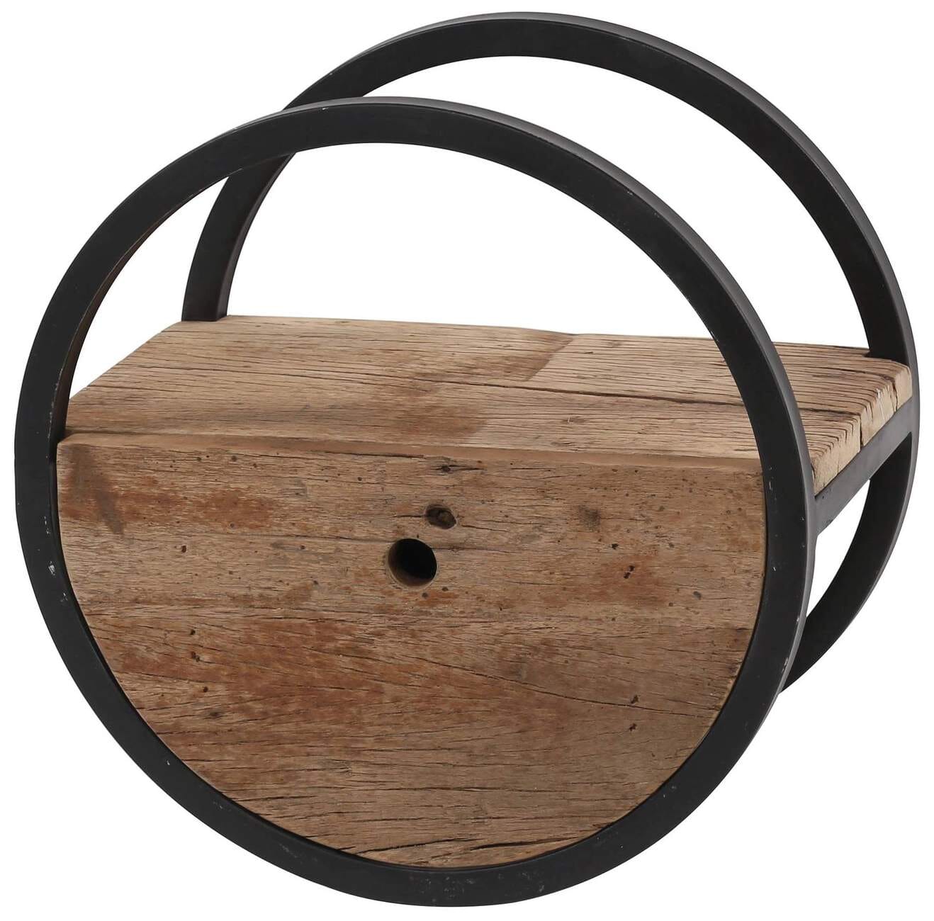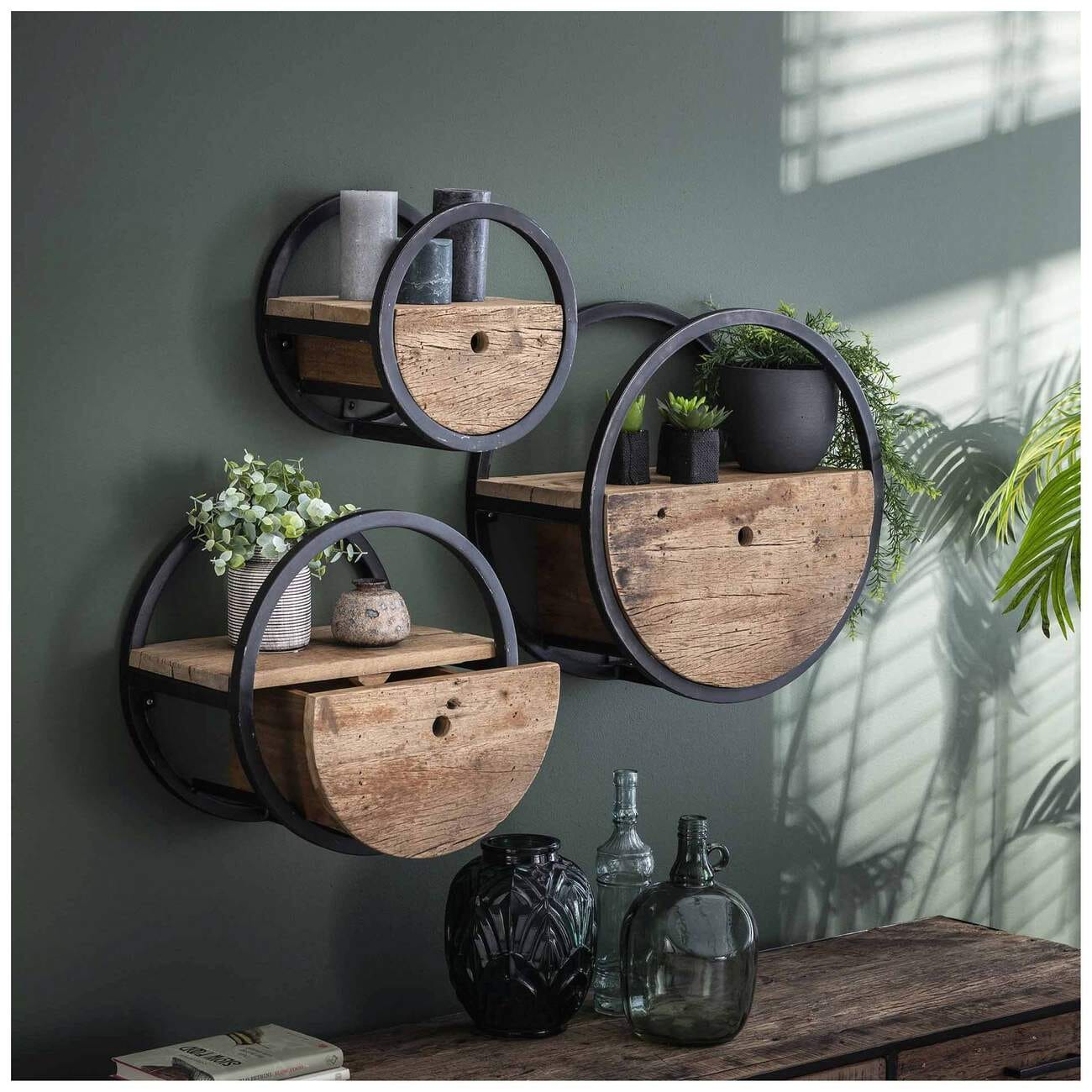 Wandregal OUD 40 rund Stahlrahmen Hartholz Altholz mit Schublade