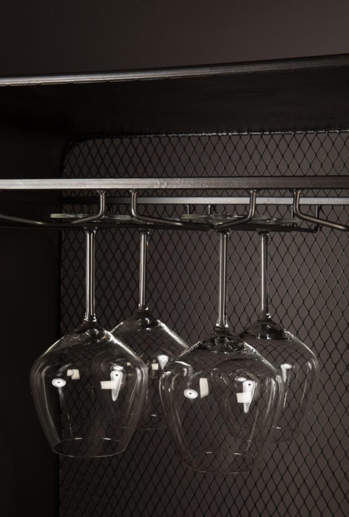 Nun kommt aber noch der Clou: Vier Schienen für Weingläser sorgen für den klirrenden Effekt. Schnell zum Glas gegriffen, dieser Spruch erhält hier eine neue Bedeutung!