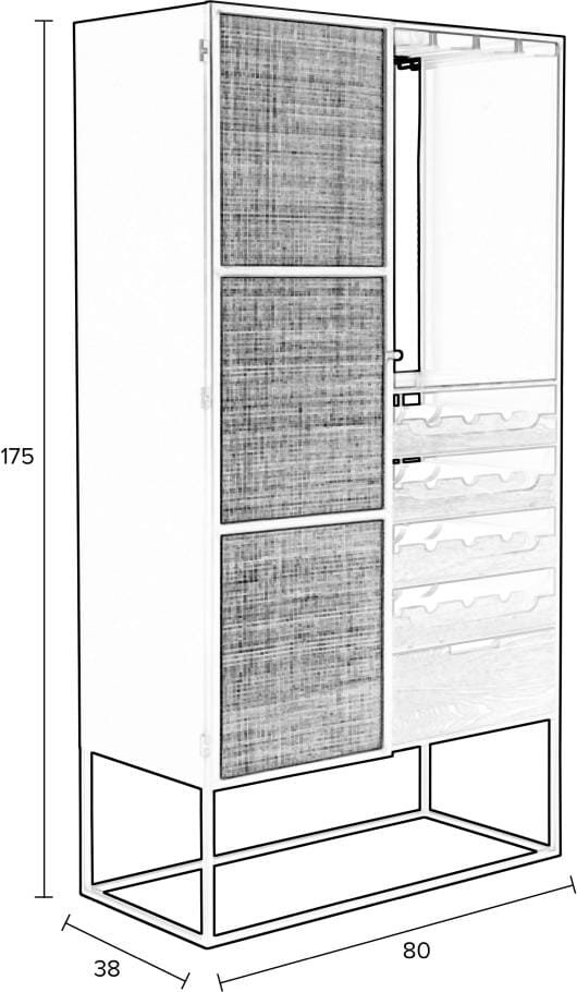 Der elegante Weinschrank GUUJI HIGH hat ein zeitloses Design und präsentiert sich im angesagten Vintage Stil. Der Weinschrank ist vielseitig mit bereits bestehenden Einrichtungsgegenständen kombinierbar und passt sich harmonisch in Wohnzimmer, Esszimmer oder Lounges ein.