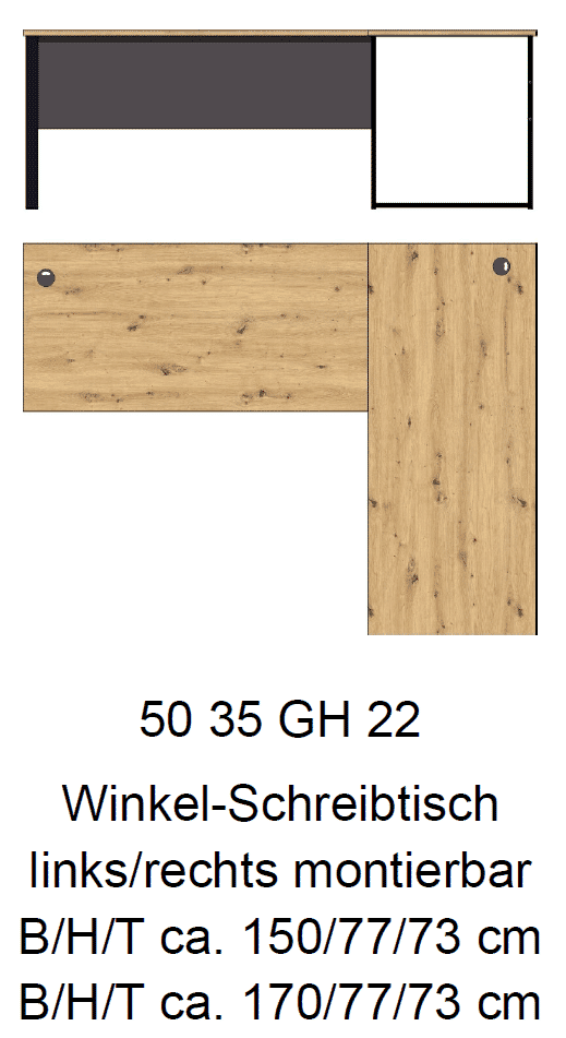Eckschreibtisch MEMPHIS Artisan Eiche - Metallgestell schwarz matt 229 x 170 cm - links oder rechts montierbar