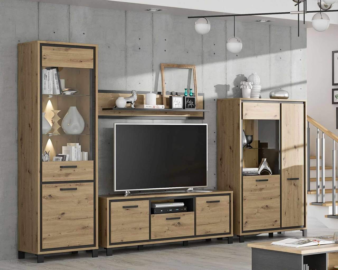 Wohnzimmerschrank TRONDHEIM, Optik: Artisan Eiche / Schwarzeiche - von FORTE