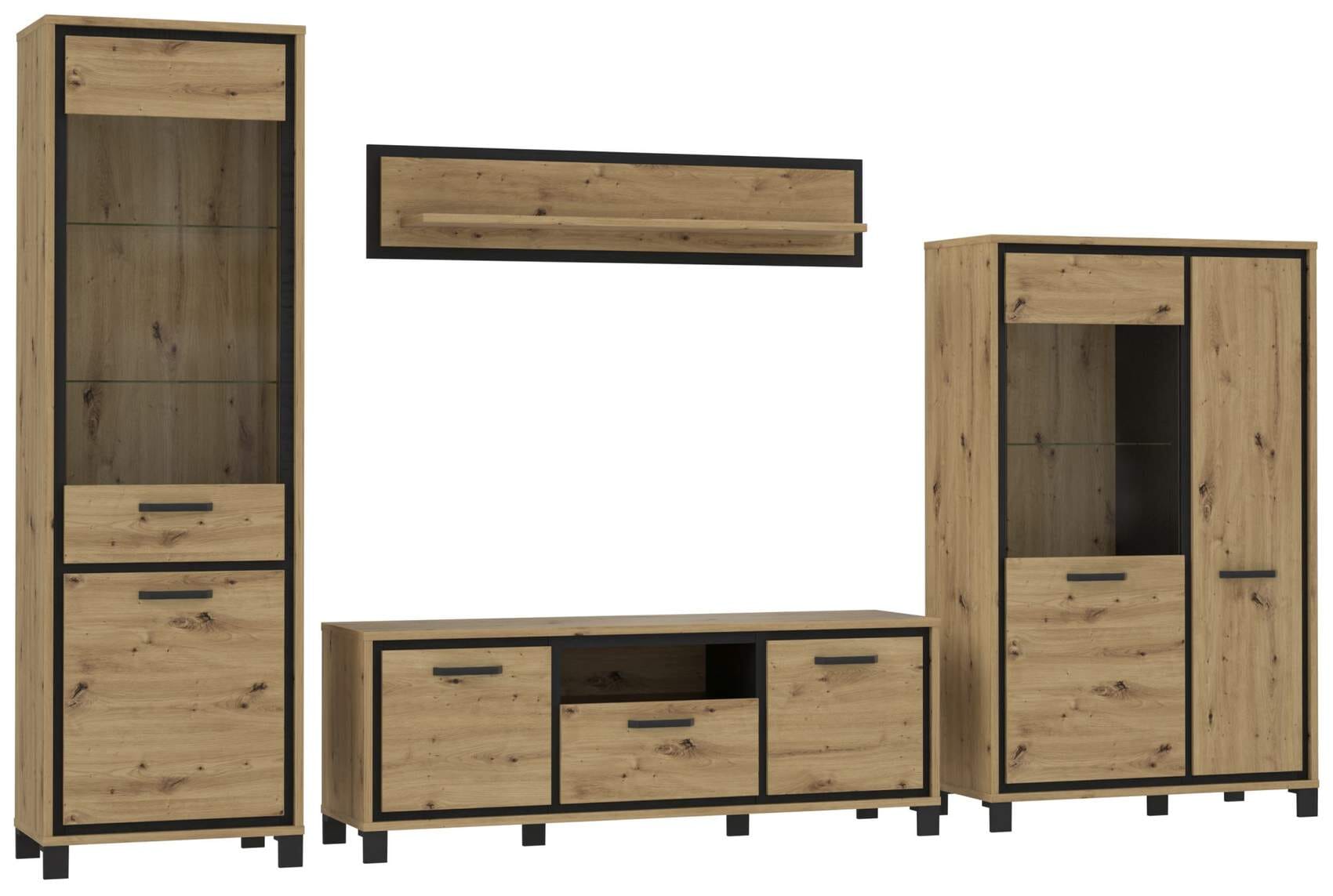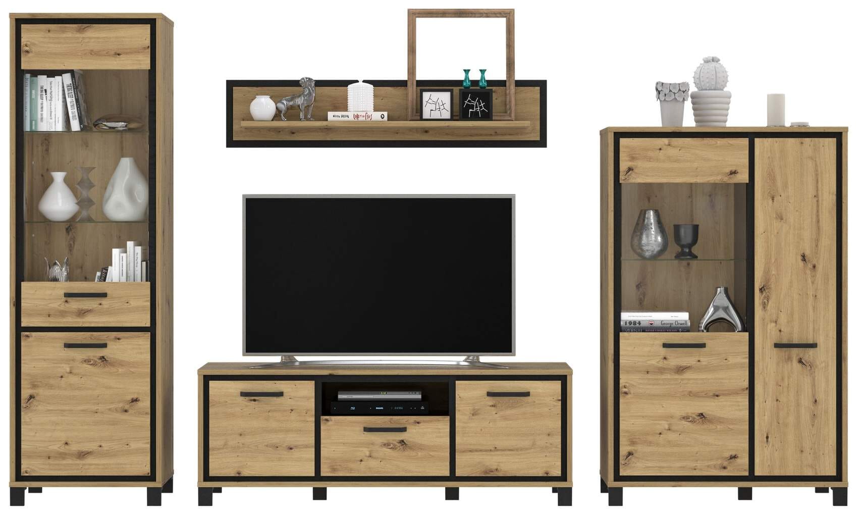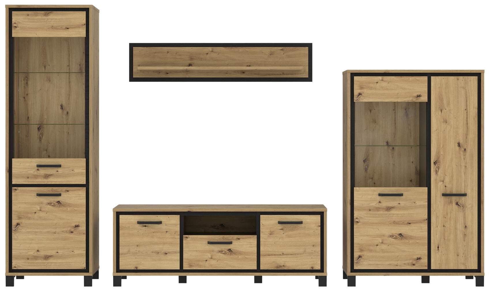 FORTE Wohnzimmerschrank TRONDHEIM 4-tlg. Artisan Schwarzeiche Optik