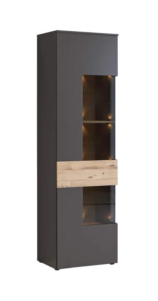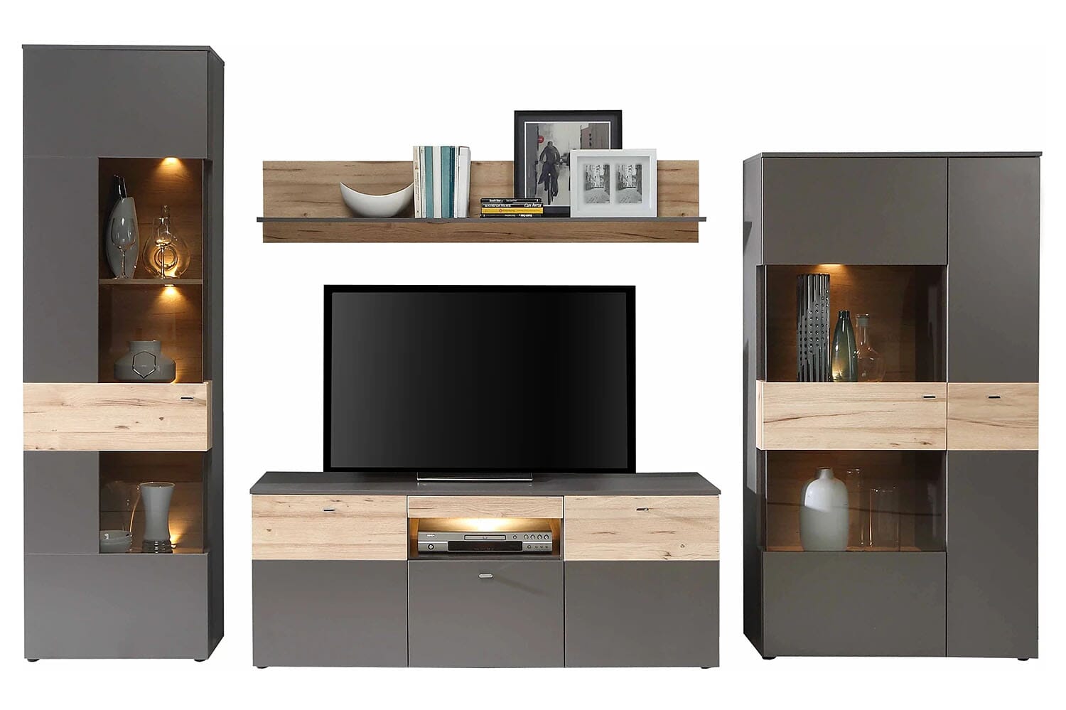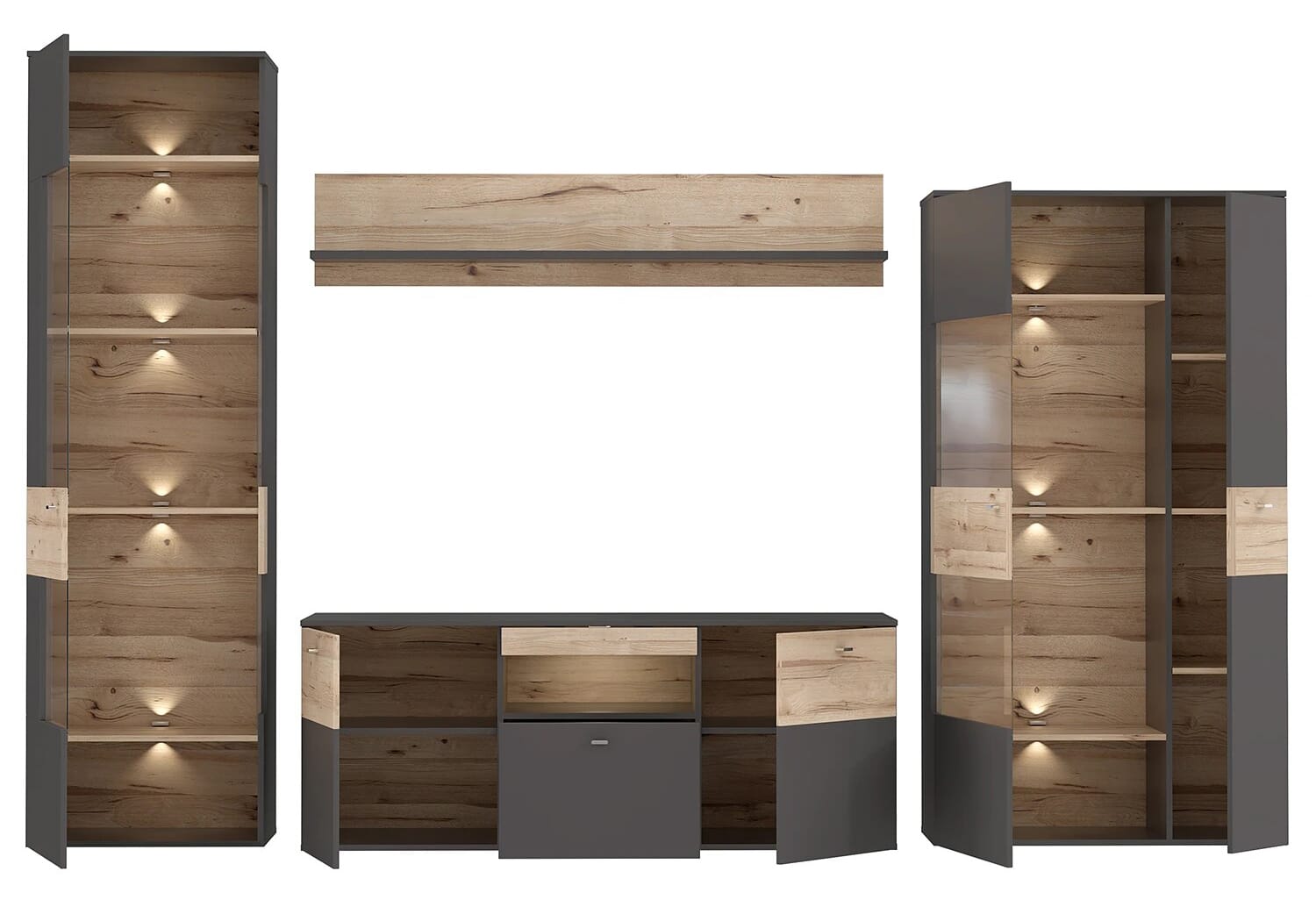 Wohnzimmerschrank COMO Grau mit Planked Eiche von Forte mit LED