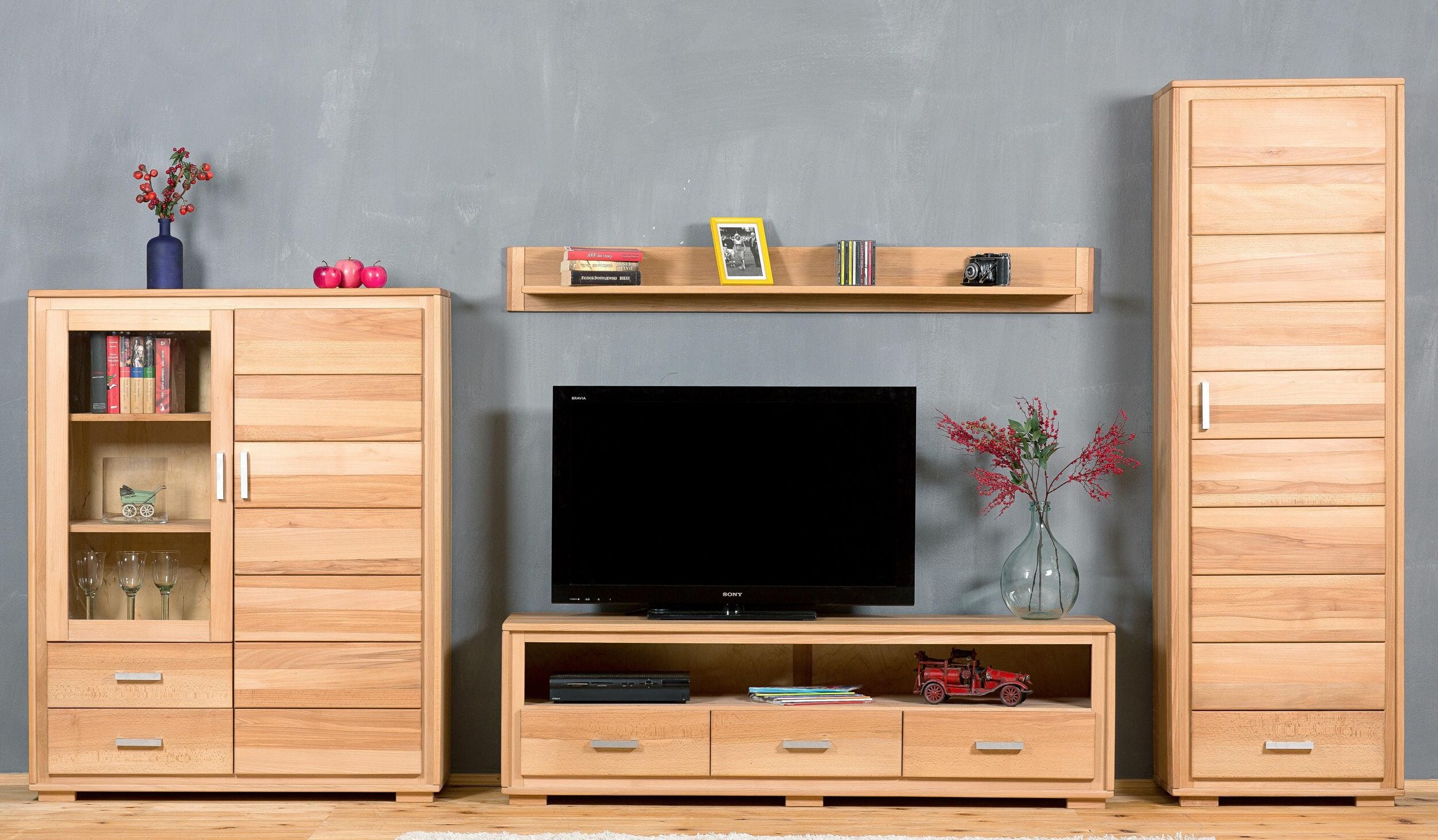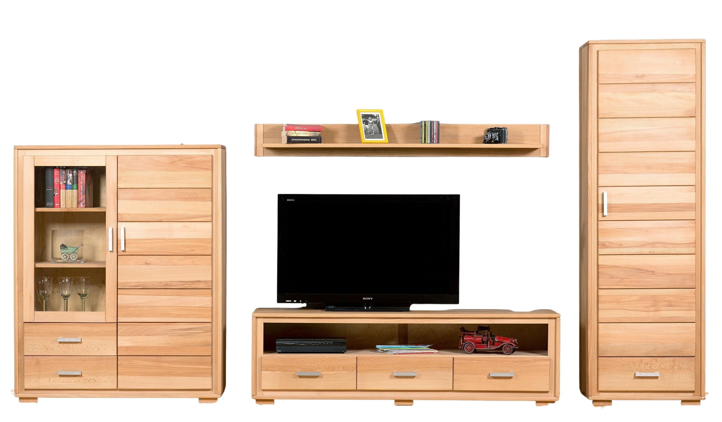 Wohnwand Genf Set VI Kernbuche Massivholz geölt 4-teilig