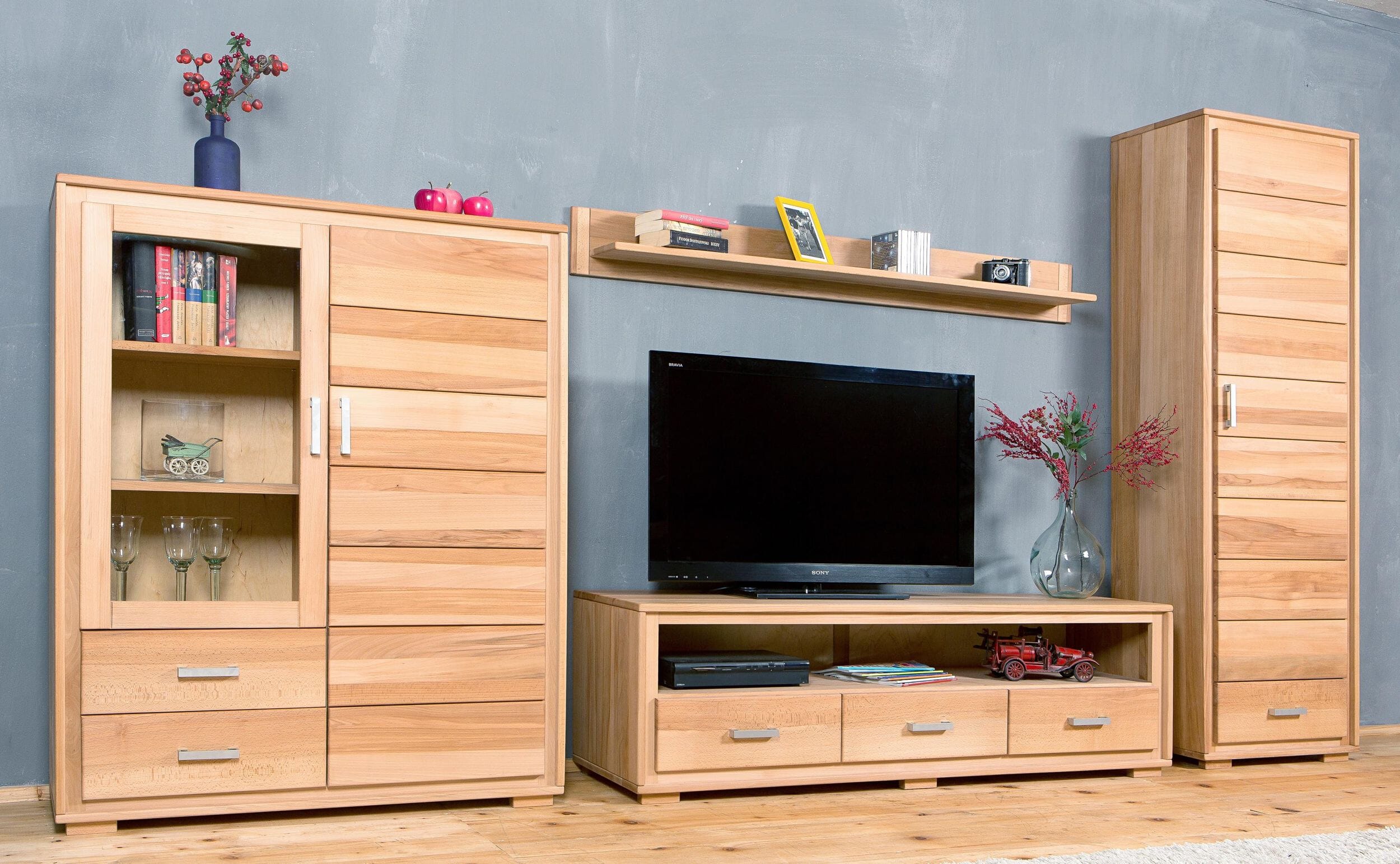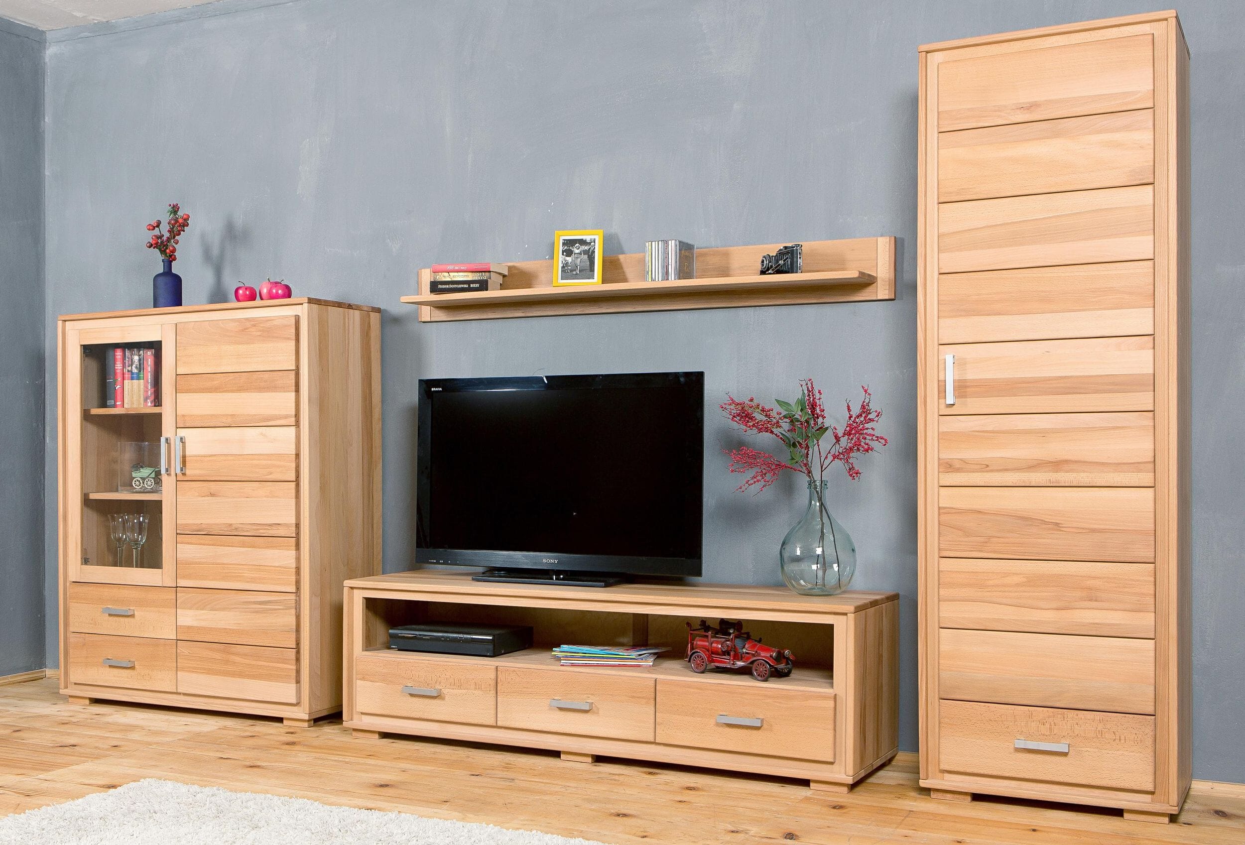 Wohnwand Genf Set VI 4-teilig Kernbuche Massivholz geölt und gewachst