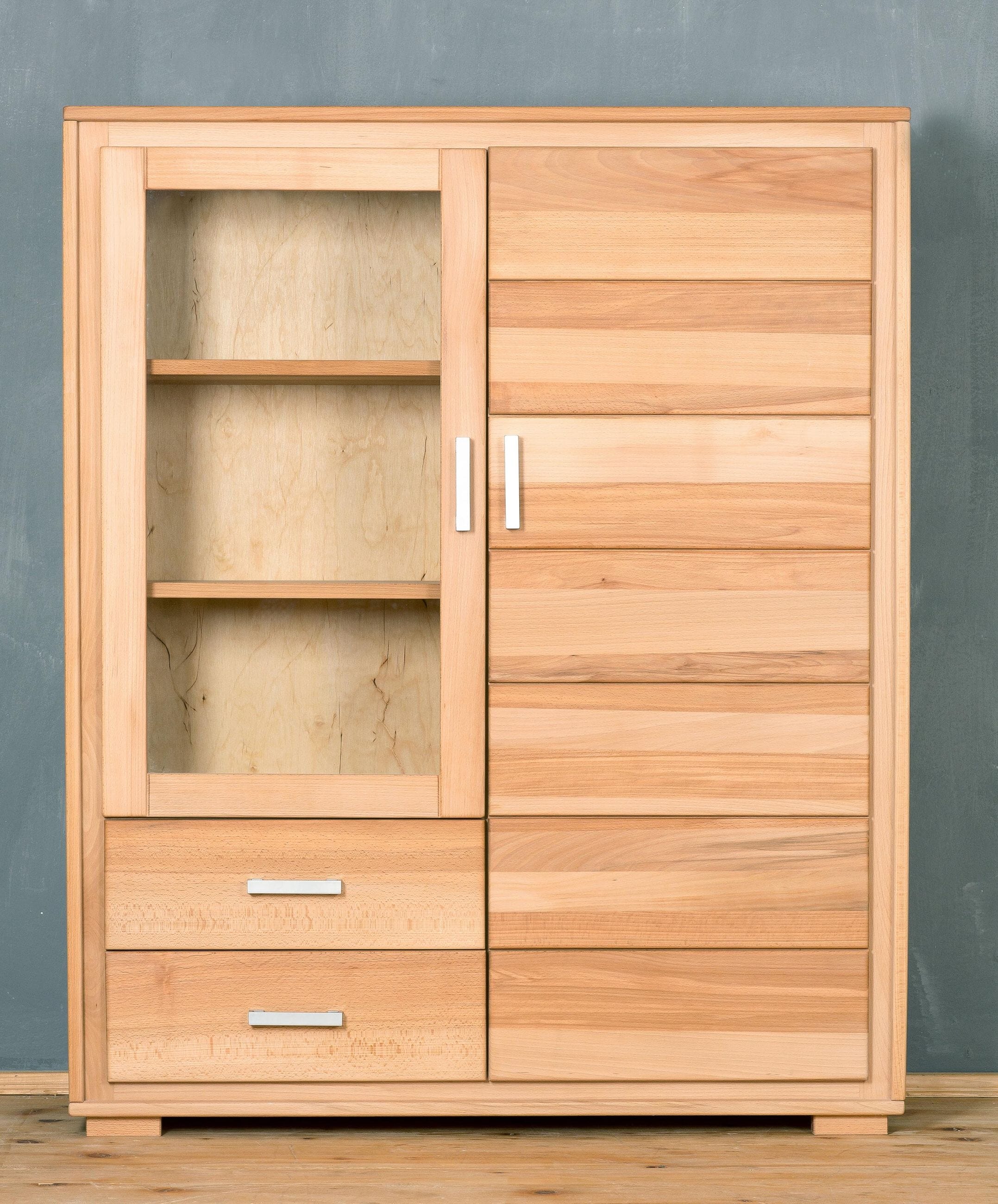 Artikel-Nr.: 6256Tolle 4-teilige Wohnwand aus massiver Kernbuche bestehend aus: