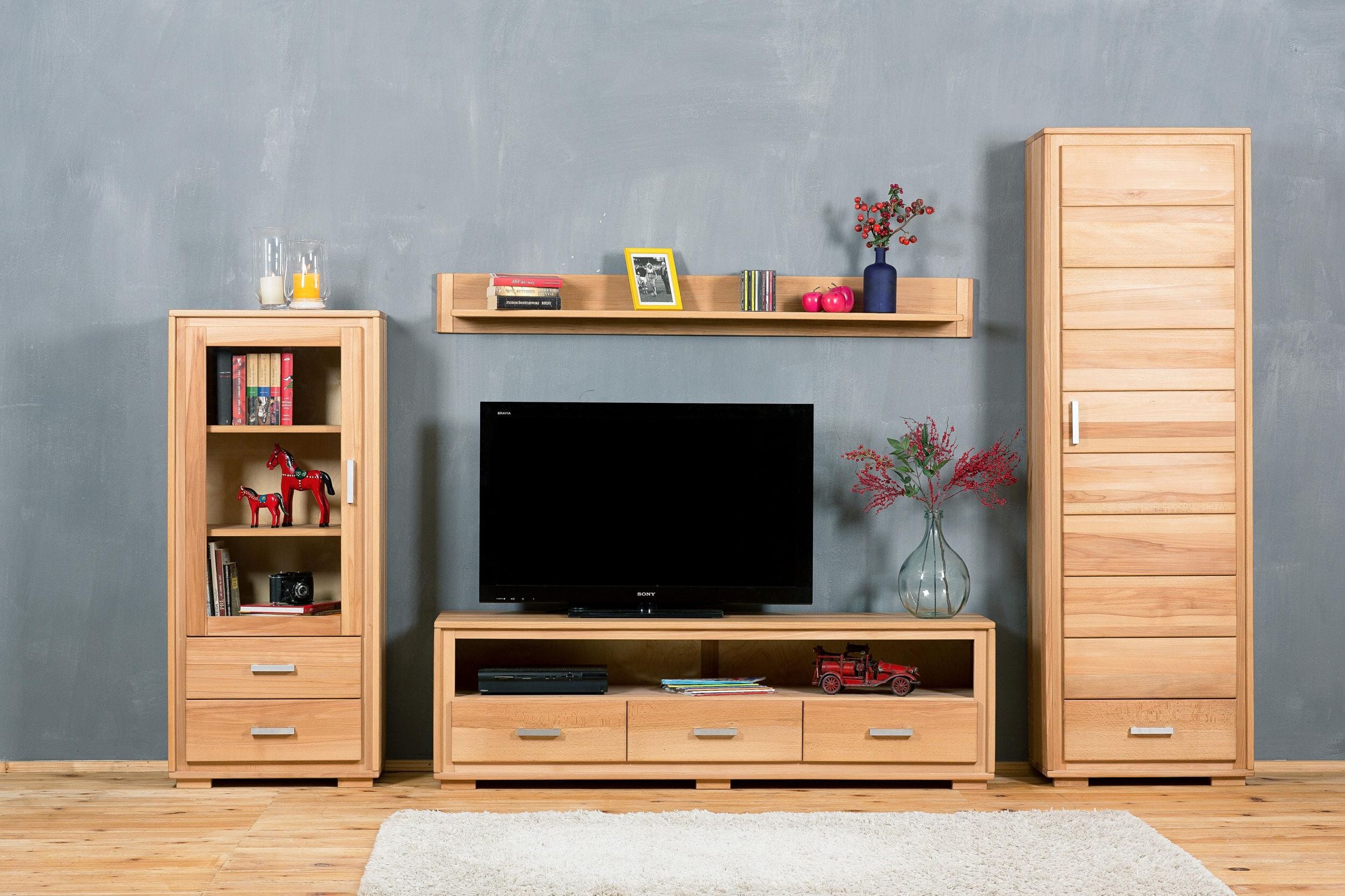 Wohnwand Genf Set VIII Kernbuche Massivholz geölt 4-teilig