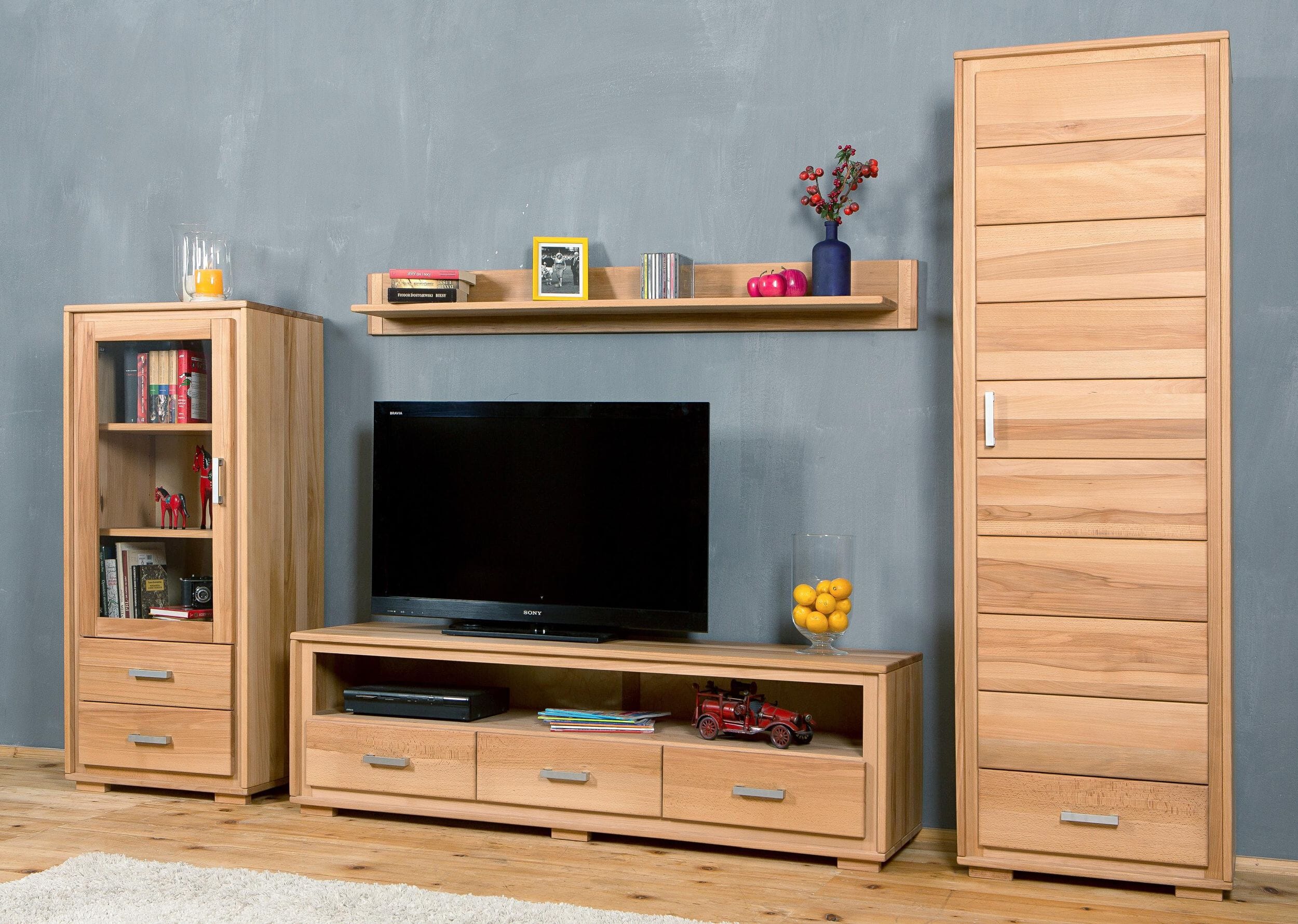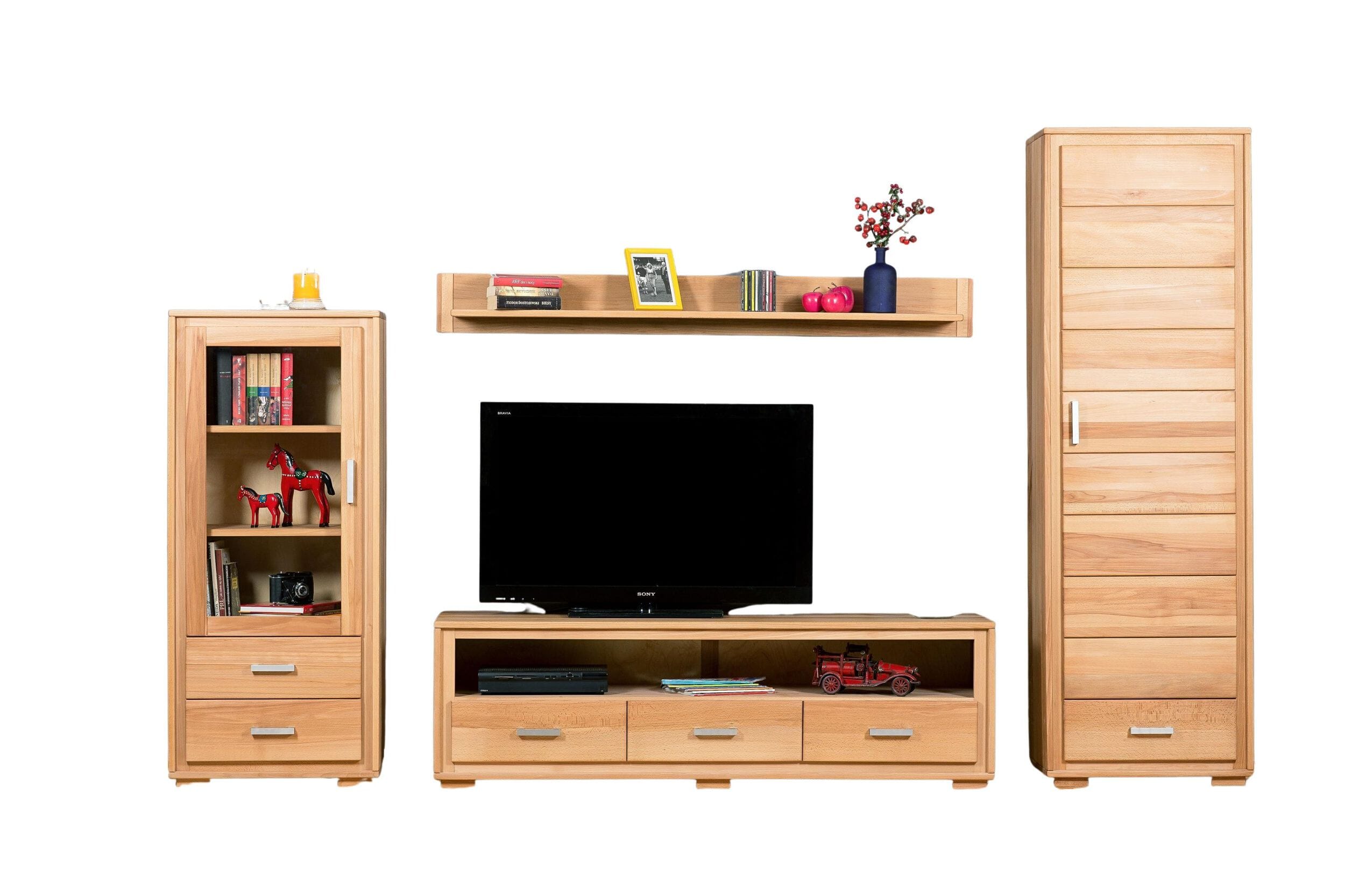 Wohnwand Genf Set VIII 4-teilig Kernbuche Massivholz geölt und gewachst