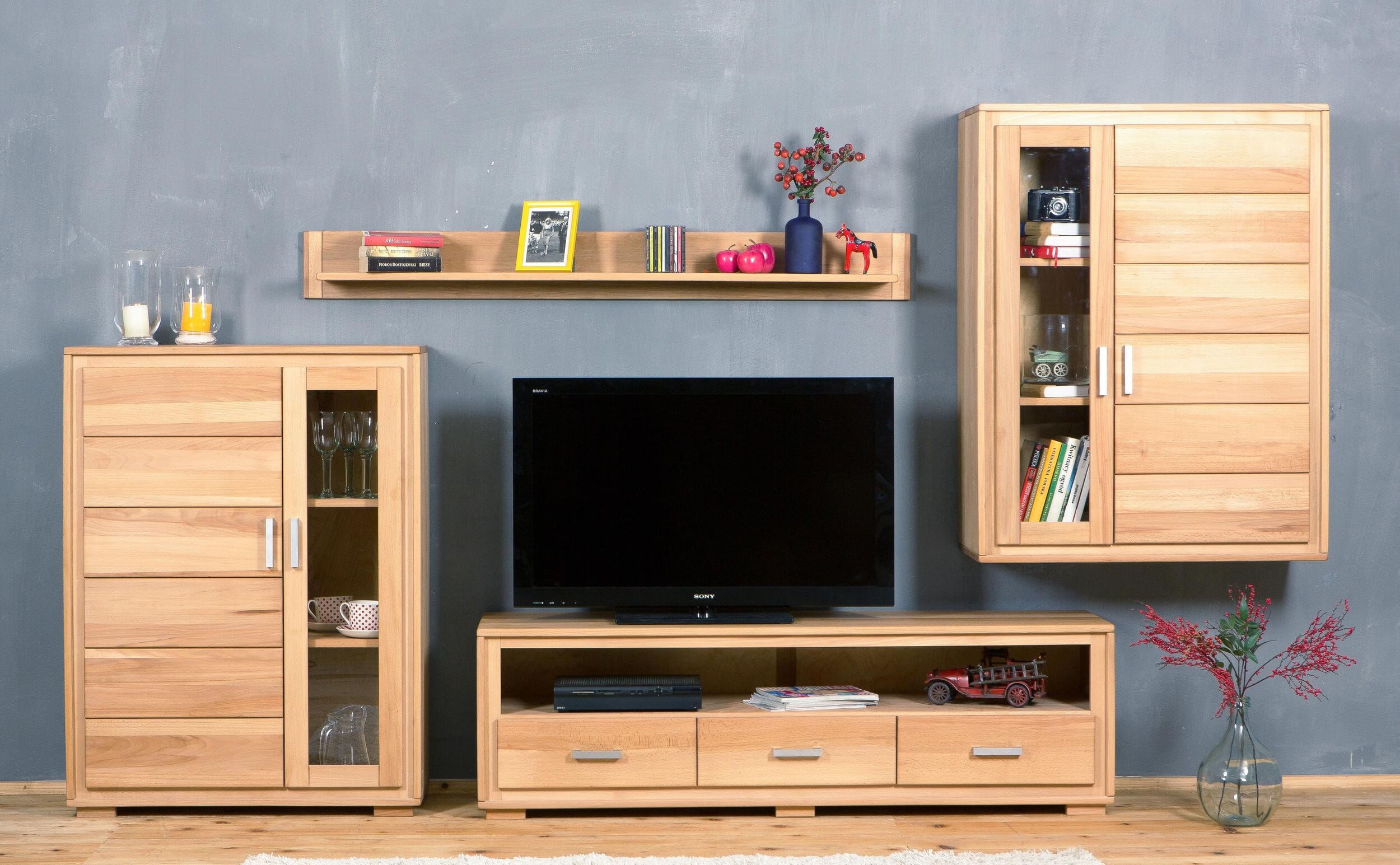 Wohnwand Genf Set X 4-teilig Kernbuche Massivholz geölt und gewachst