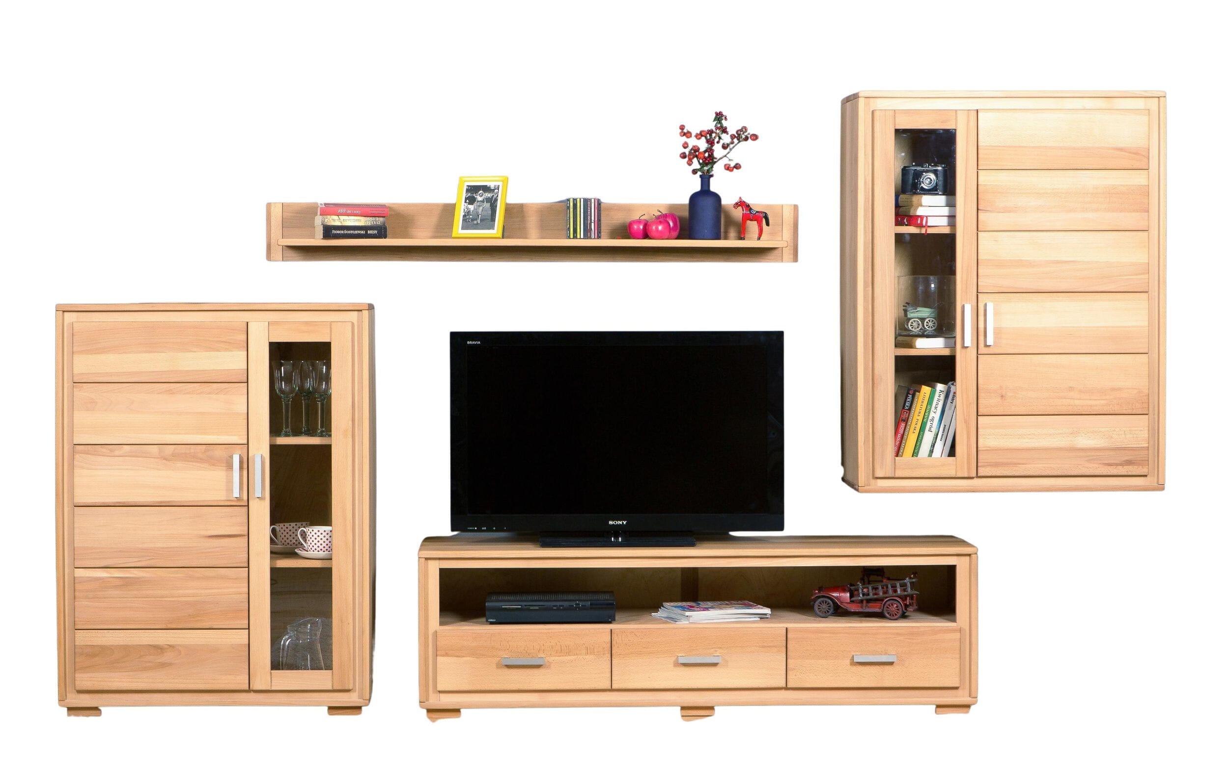 Wohnwand Genf Set X Kernbuche Massivholz geölt 4-teilig