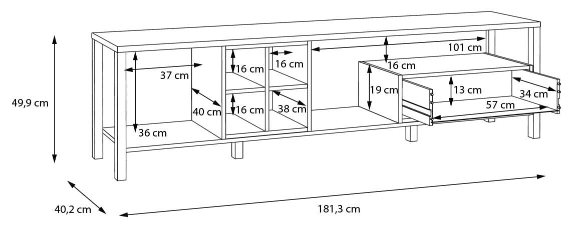 - Maße: B/H/T 181,3 x 49,9 x 40,2 cm