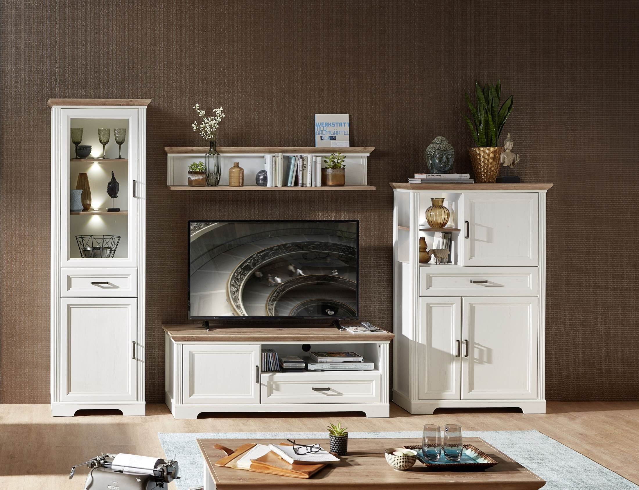 Wohnwand JASMIN UH80 Pinie weiß Nachbildung 4-teilig im Landhausstil