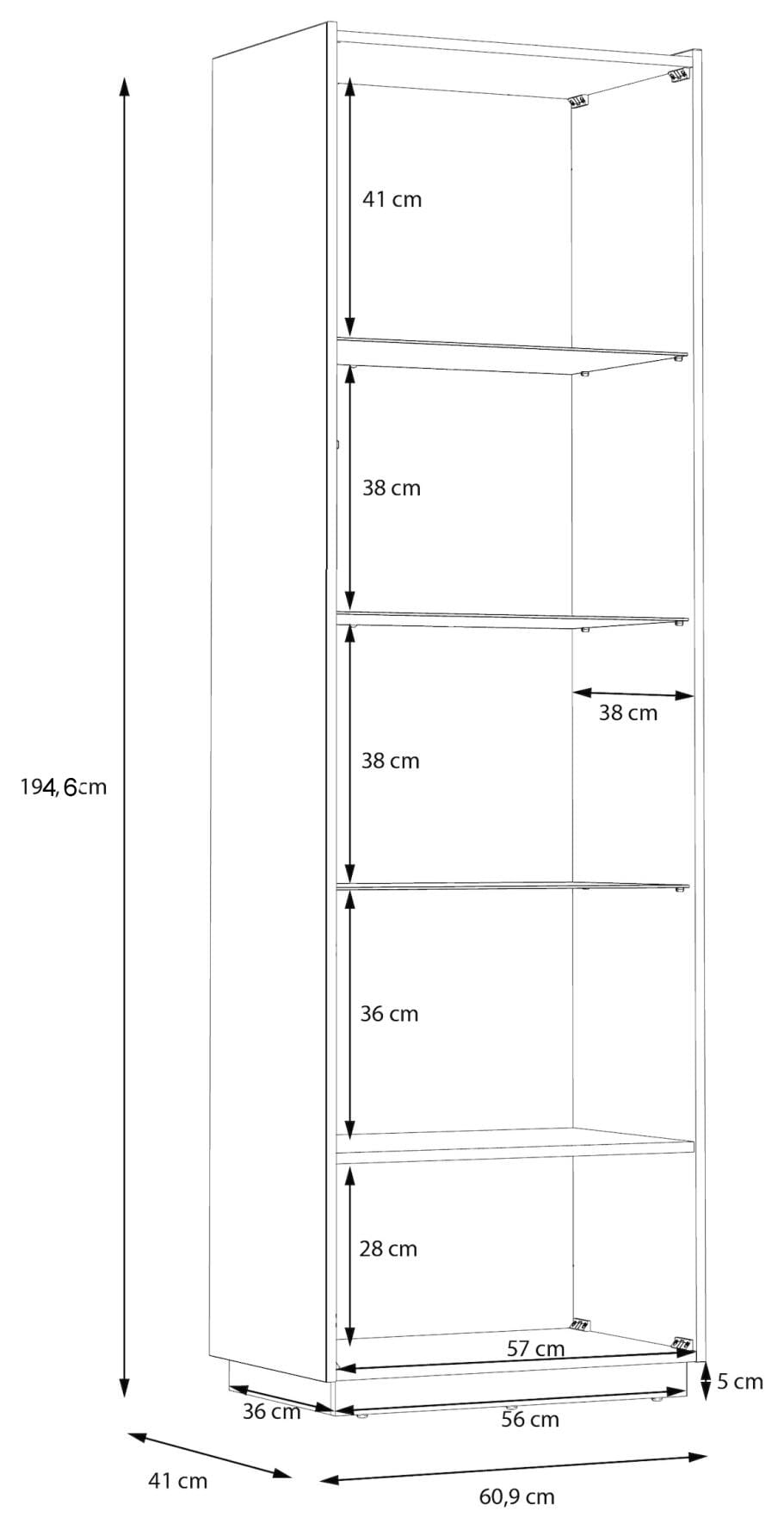 - Maße: B/H/T 60,9 x 194,9 x 41 cm