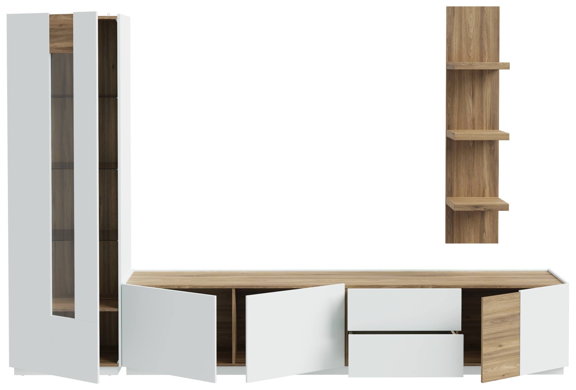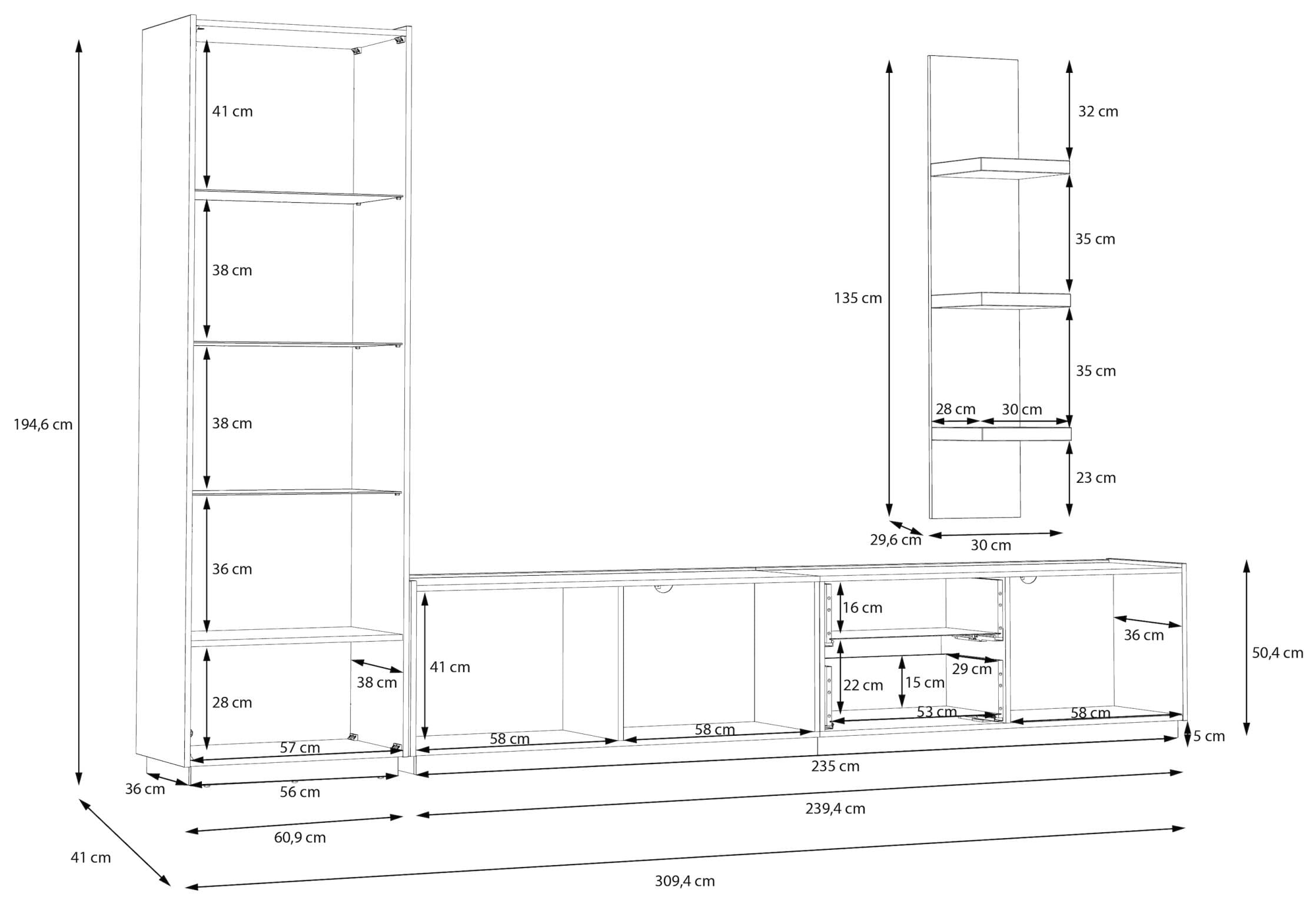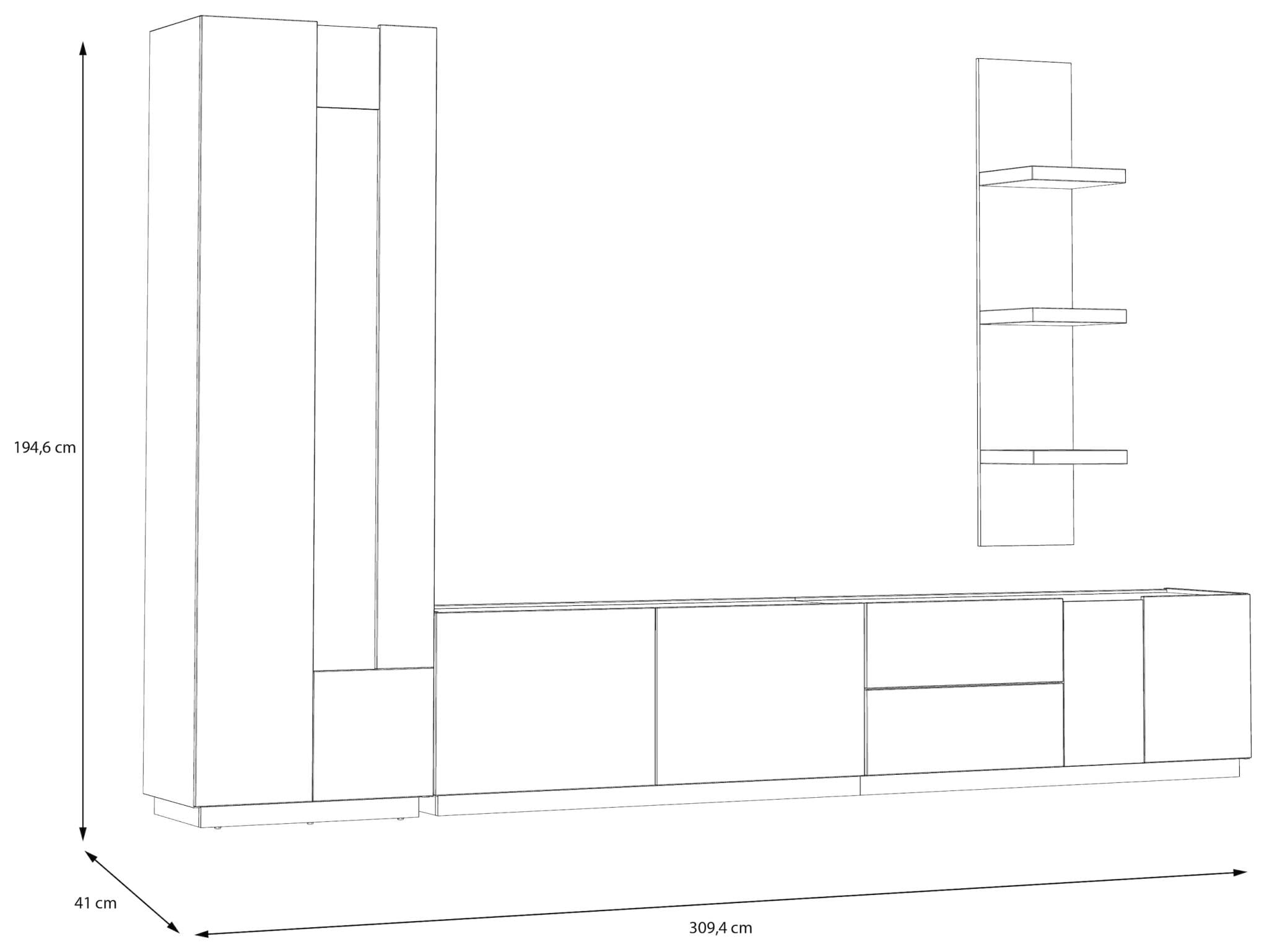 Stellmaß Wohnwand wie abgebildet: B/H/T 309,4 x 194,6 x 41 cm