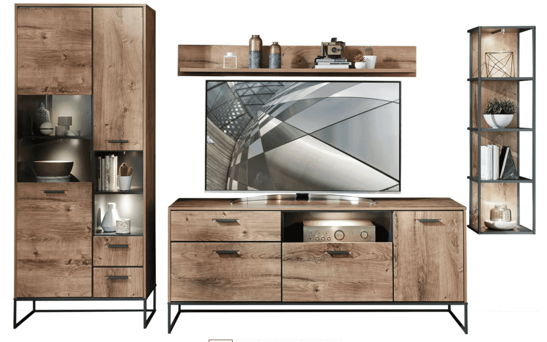 Wohnwand MANHATTAN VV88 Haveleiche Cognac montiert 4-teilig