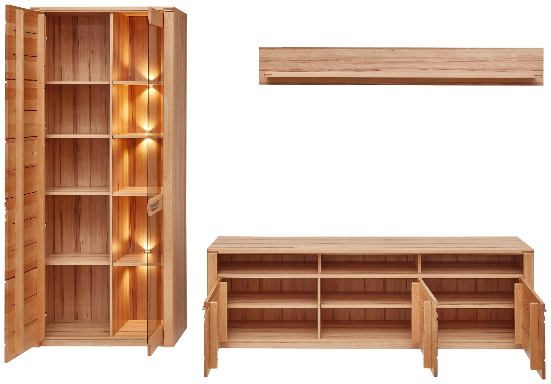 Wohnwand NATURE ONE FF81 - 3-teilig - Front Kernbuche Massivholz - mit LED Beleuchtung