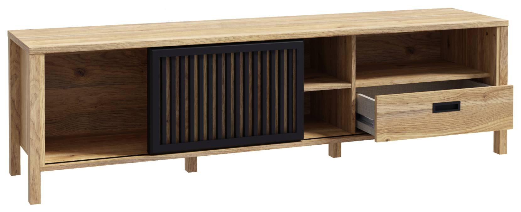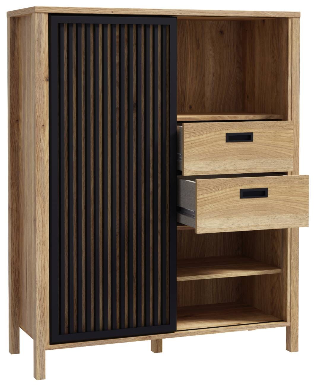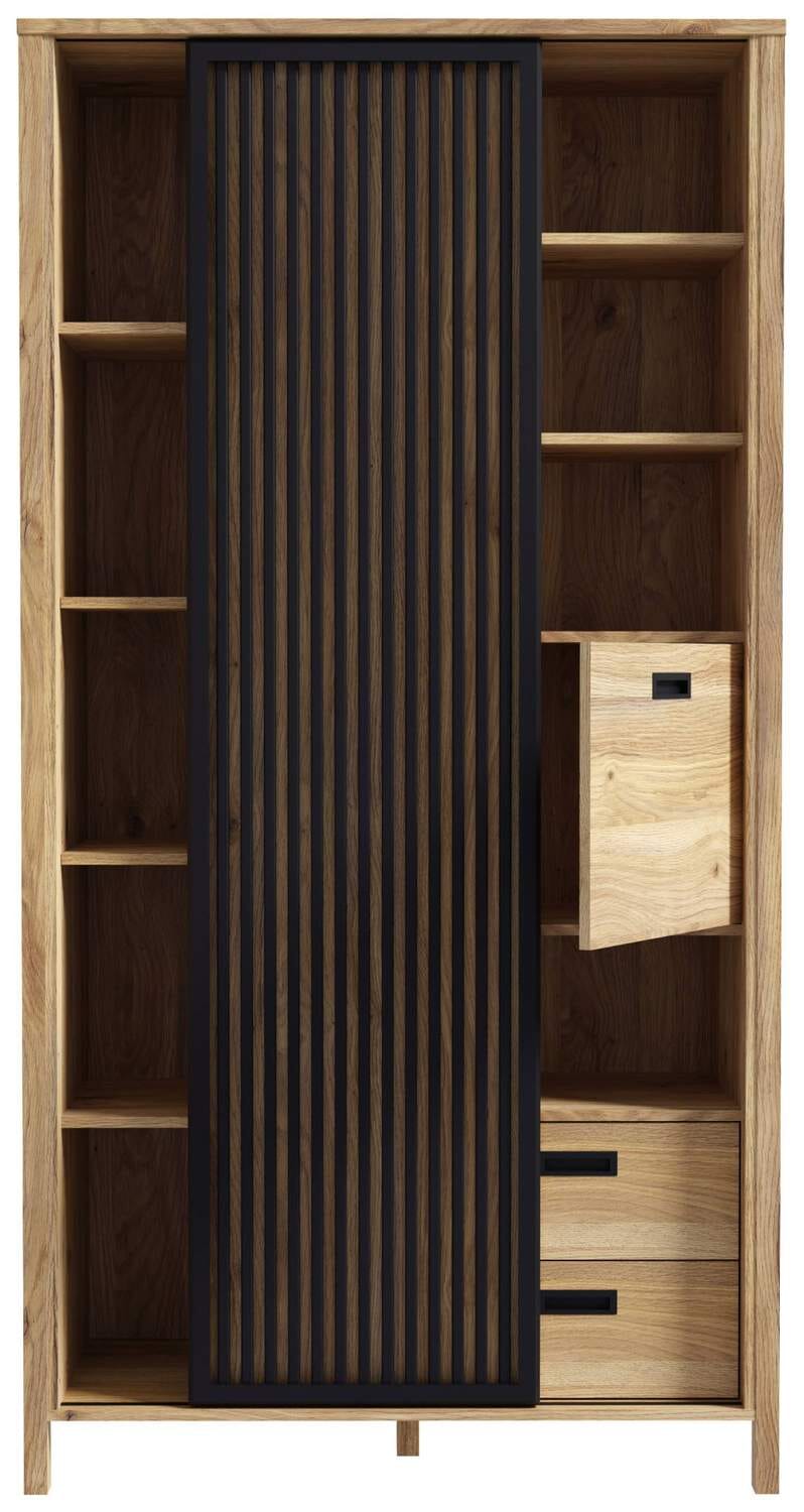 Mauvella Eiche und Schwarz: diese Kombination steht für zeitgemäßes Wohnen mit Stil und kommt an der JYTANA Serie besonders gut zur Geltung. Die interessante Optik sorgt für jede Menge Hingucker, begleitet von ausreichend Stauraum für Bücher und Glaswaren, Schalen, Gläsern oder Geschirr.