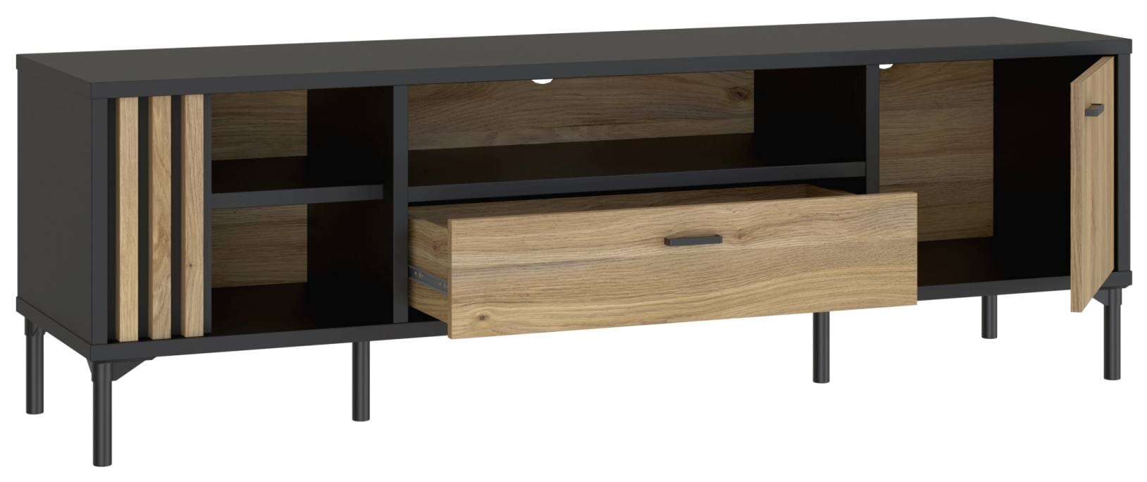 4-teilige Wohnwand JOAKIMIS, in Schwarz und Mauvella Eiche, von Forte