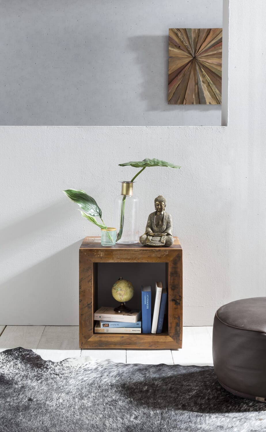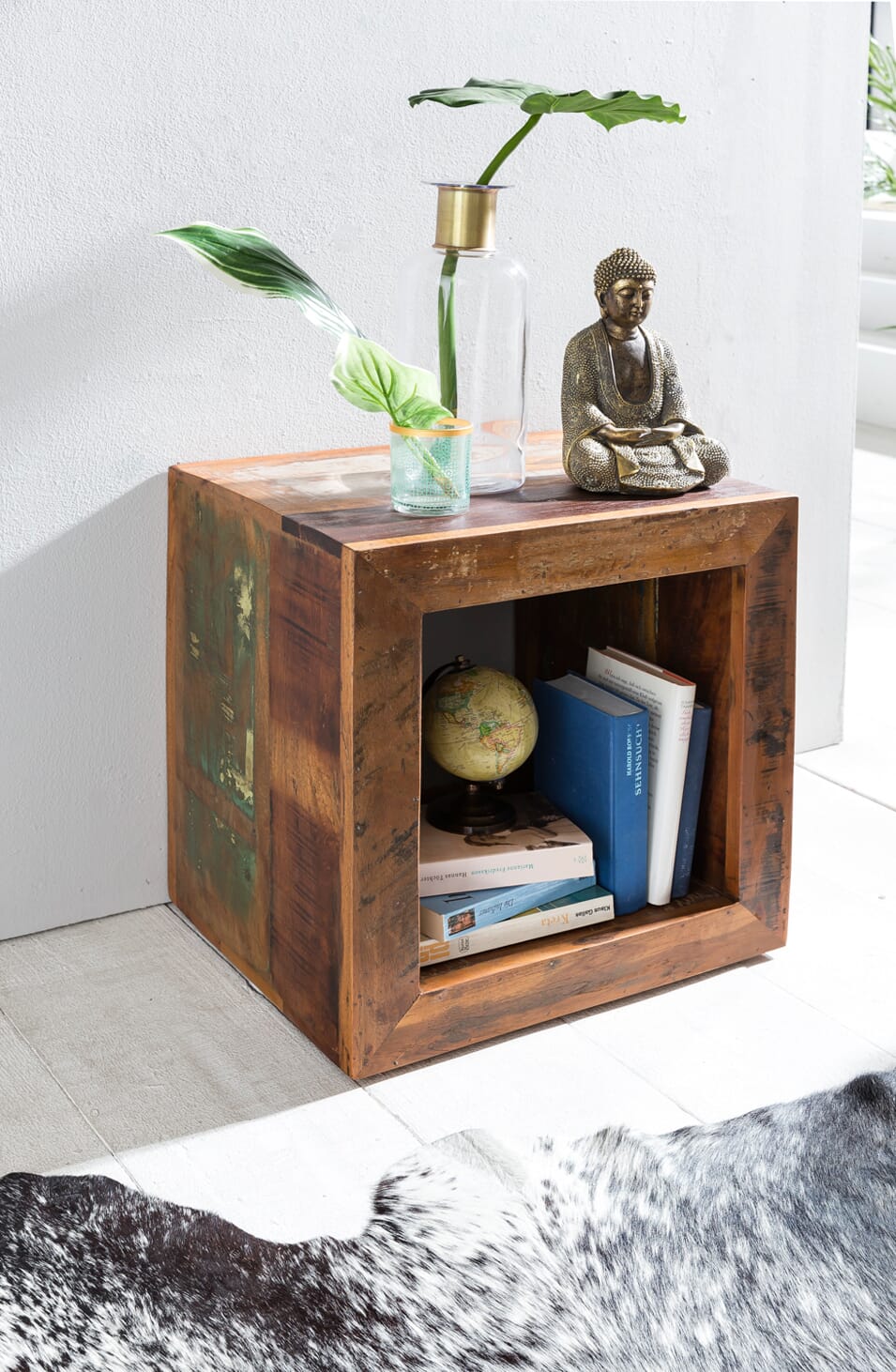 Quadratischer Beistelltisch im Shabby-Chic Design aus recyceltem Mango Massivholz