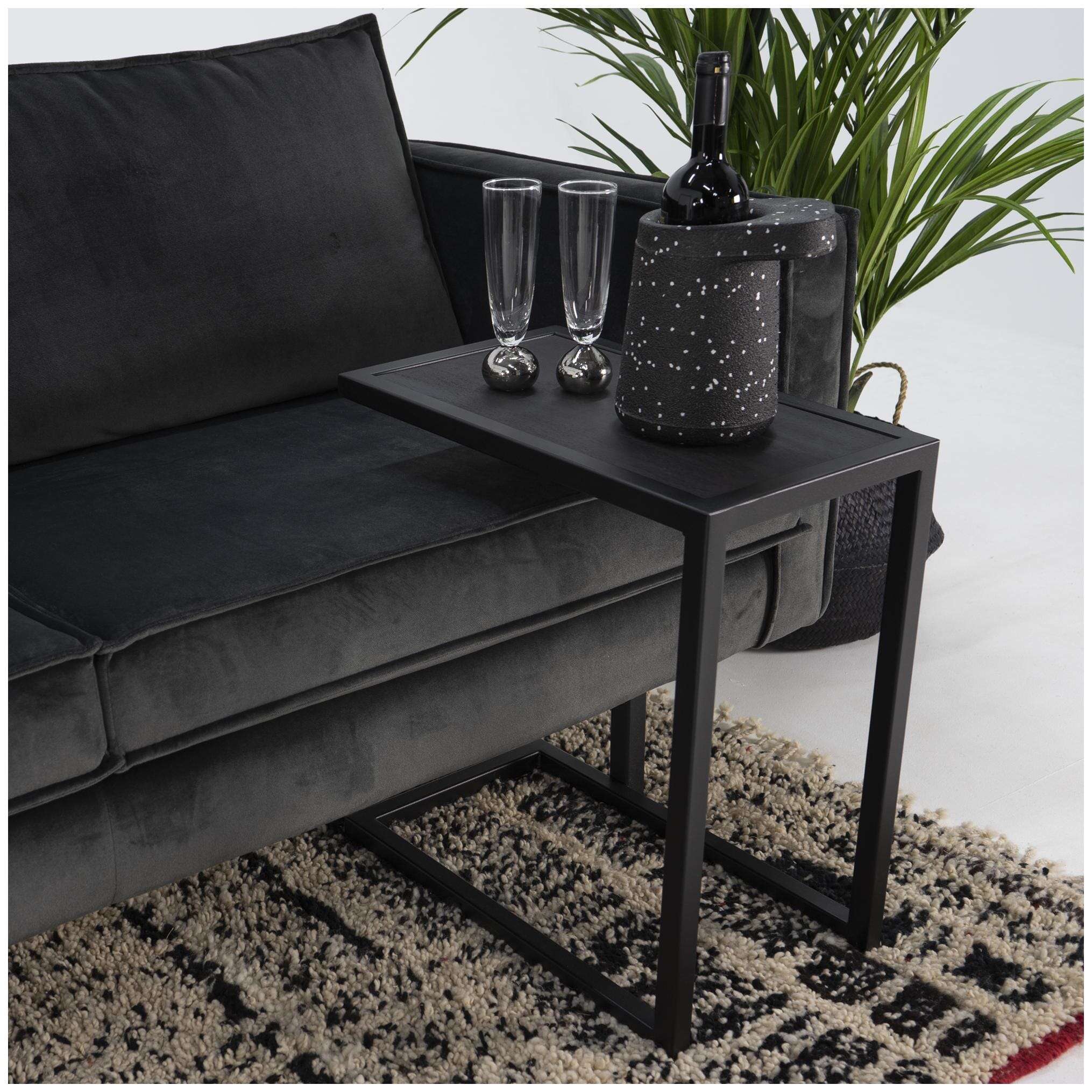 Der Daniel Divani Beistelltisch macht das Essen oder Arbeiten vom Sofa aus viel einfacher. Schieben Sie ihn über das Sofa oder stellen Sie ihn neben die Armlehne und schon ist alles in Reichweite! Durch die Kombination des Stahlgestells mit der schwarz gebürsteten Eichenplatte passt der Beistelltisch zu vielen Einrichtungsstilen.