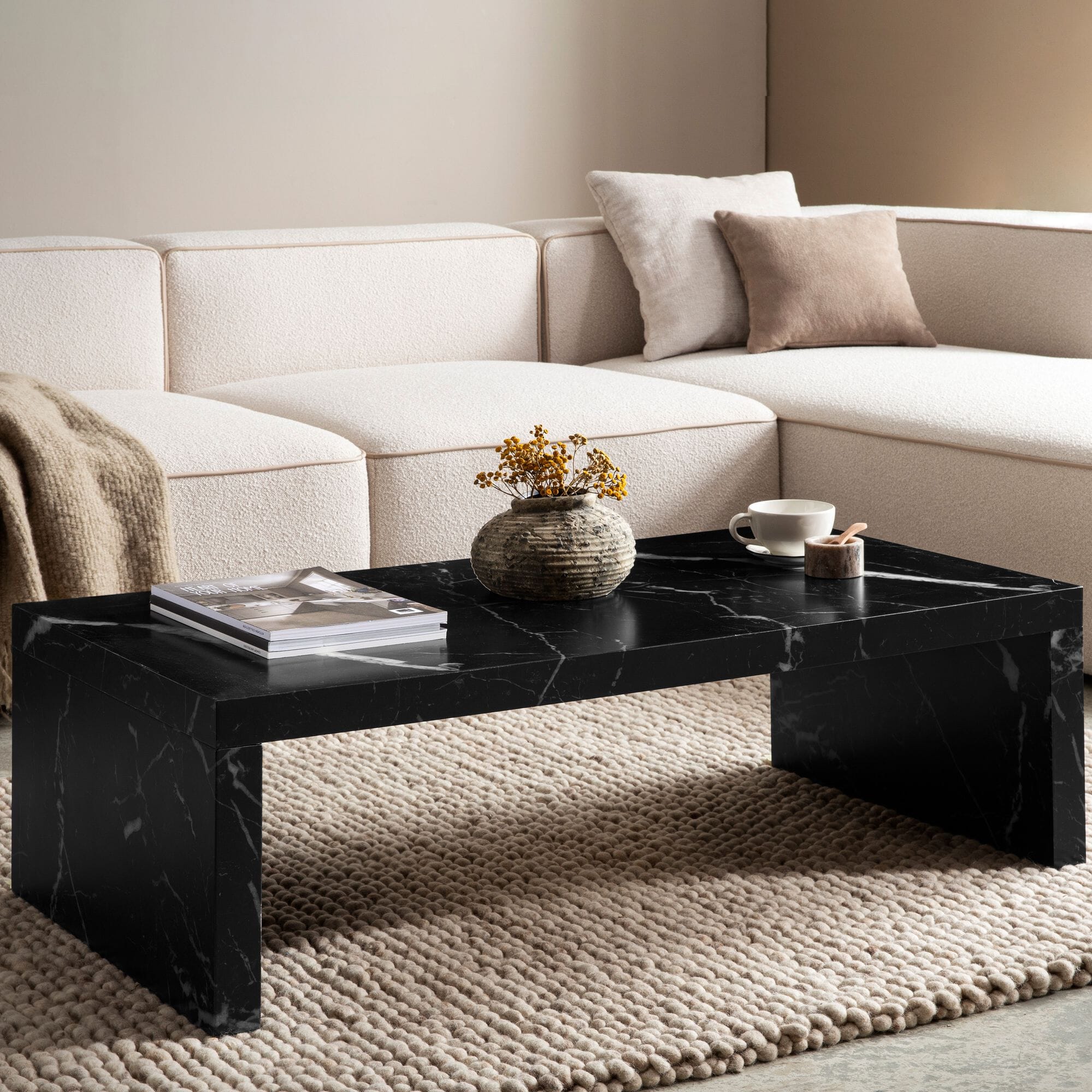 Schlichter Couchtisch in Marmoroptik und zeitlosem Design