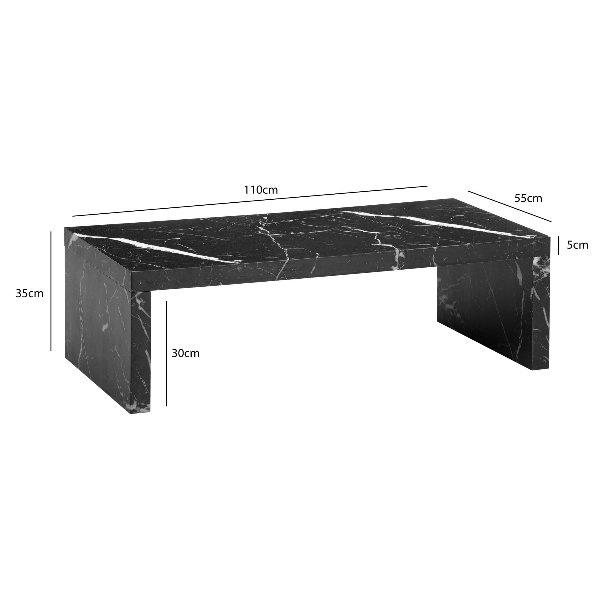 Couchtisch 110x55x35cm Schwarz Marmor-Optik Rechteckig Design Wohnzimmertisch