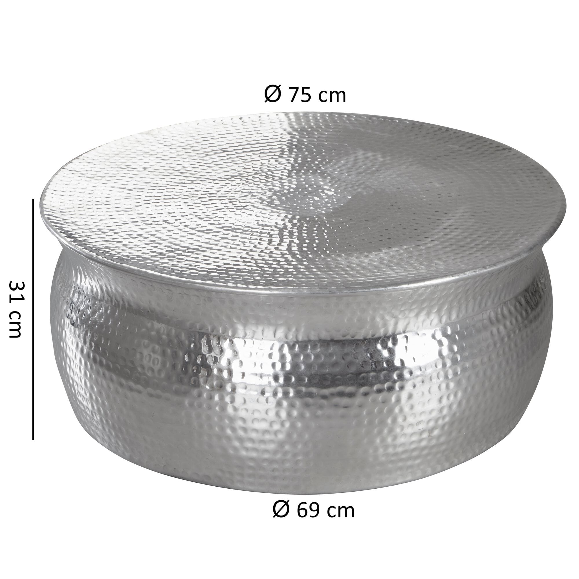 Couchtisch 75x31x75cm Aluminium Silber orientalisch rund Hammerschlag Design modern