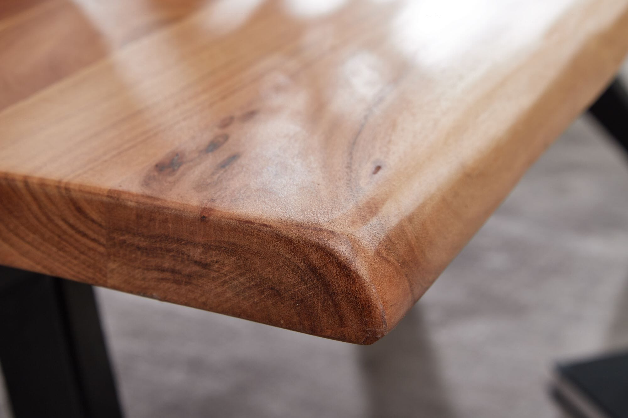 - Materialzusammensetzung: Tischplatte: Massivholz Akazie, mit Klarlack beschichtet; Metallgestell: Schwarz pulverbeschichteter Edelstahl
