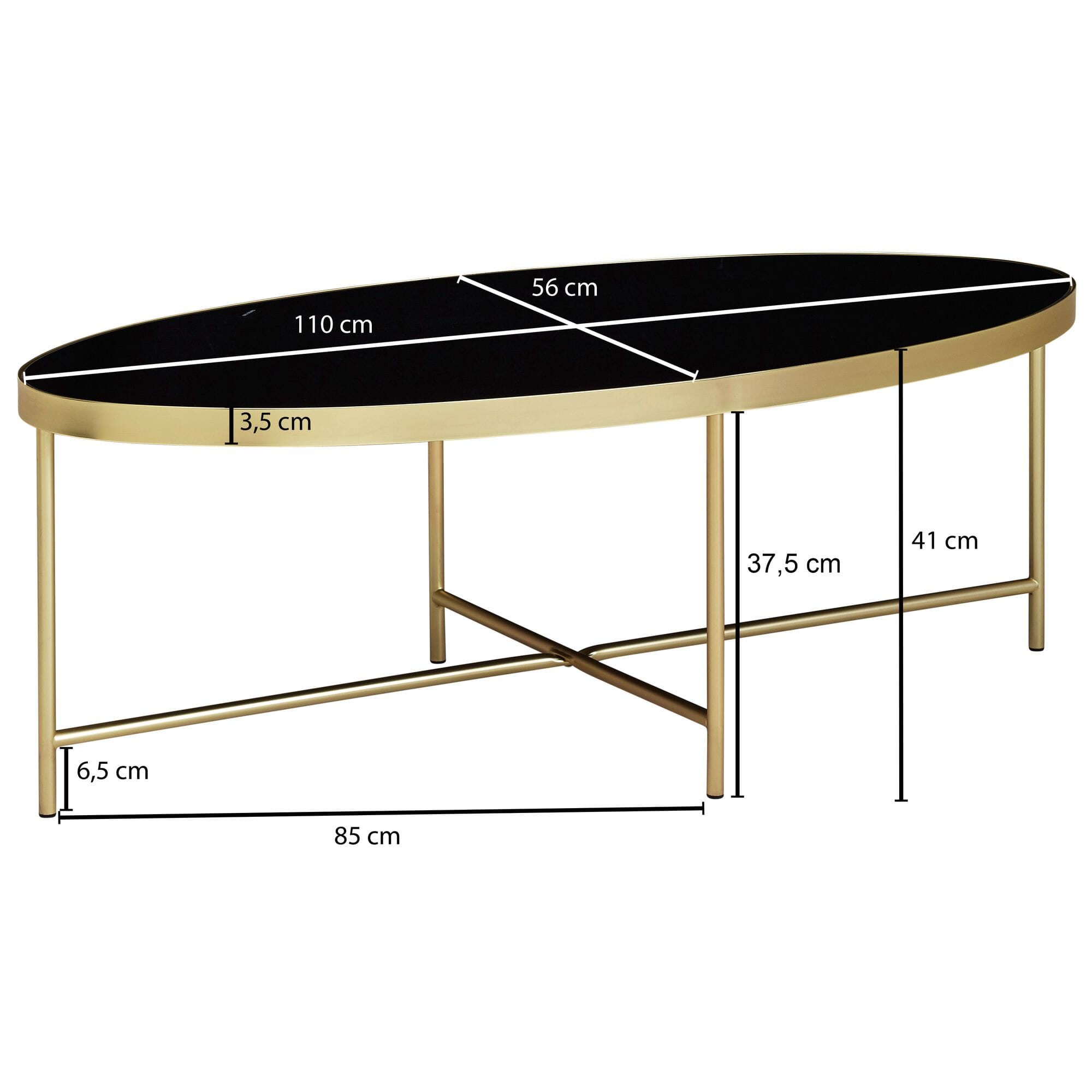 Couchtisch Glas Oval 110x56cm Schwarz Gold Metallgestell