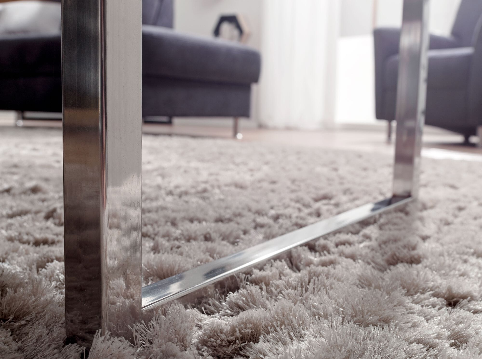 Dieser Couchtisch ist nicht nur ein Blickfang, sondern auch äußerst praktisch. Mit seiner großzügigen Abstellfläche bietet er ausreichend Platz für all Ihre Wohnaccessoires. Die rechteckige Form und die eleganten Chrom Standfüße verleihen ihm ein modernes Aussehen, das sich nahtlos in jede Einrichtung einfügt.