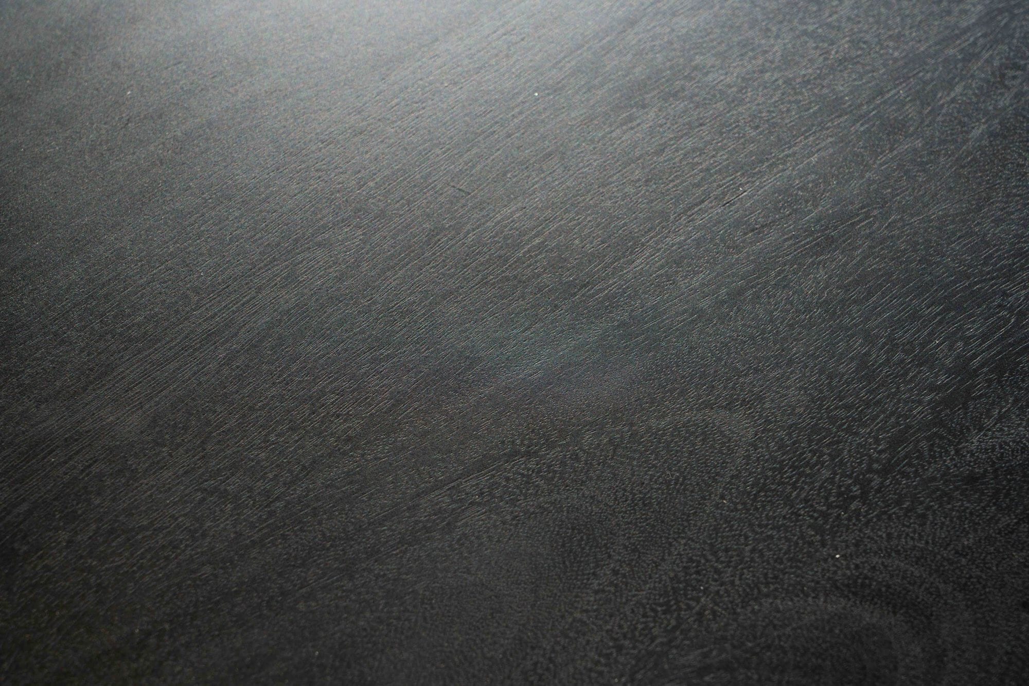 Dieser Couchtisch besticht durch seine nierenförmige Tischplatte, die von einem stabilen Dreibeingestell getragen wird. Die sichtbare Holzmaserung verleiht jedem Stück einen individuellen Charakter, während die schwarze Lackierung für einen modernen Touch sorgt.