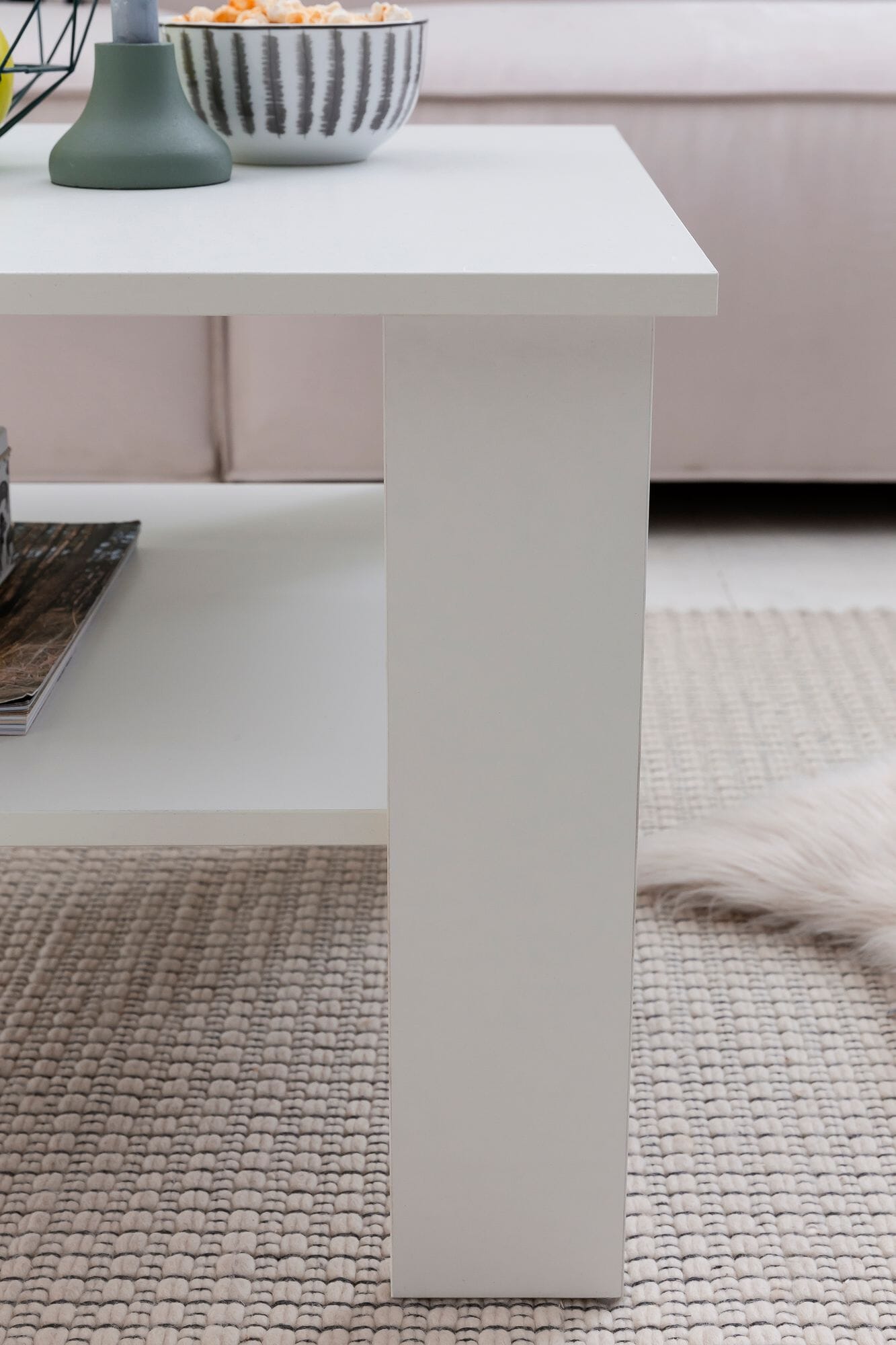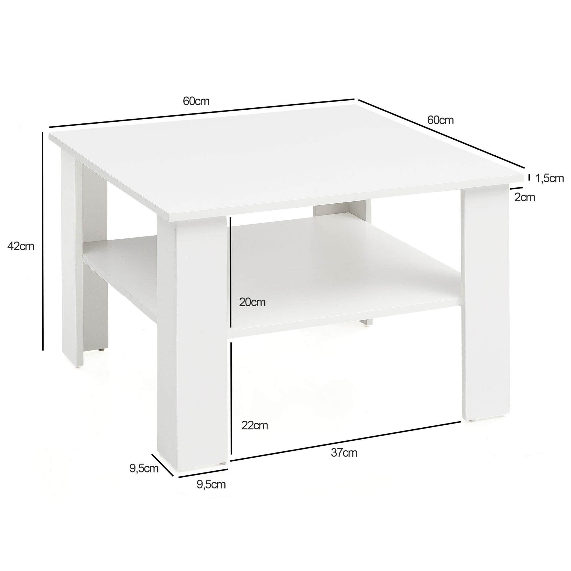 Couchtisch WL5.834 Weiß 60x42x60cm Design Holztisch mit Ablage Stauraum