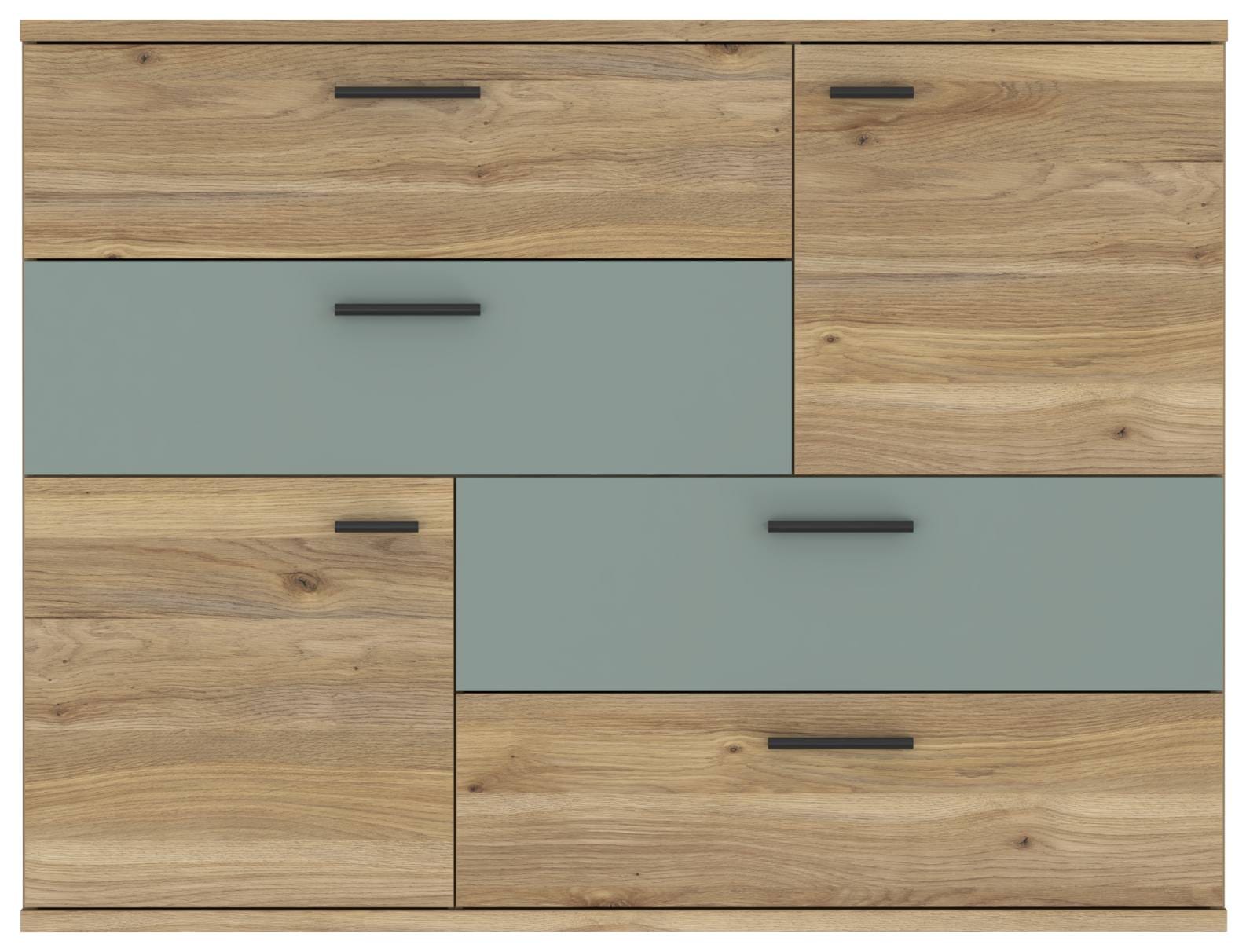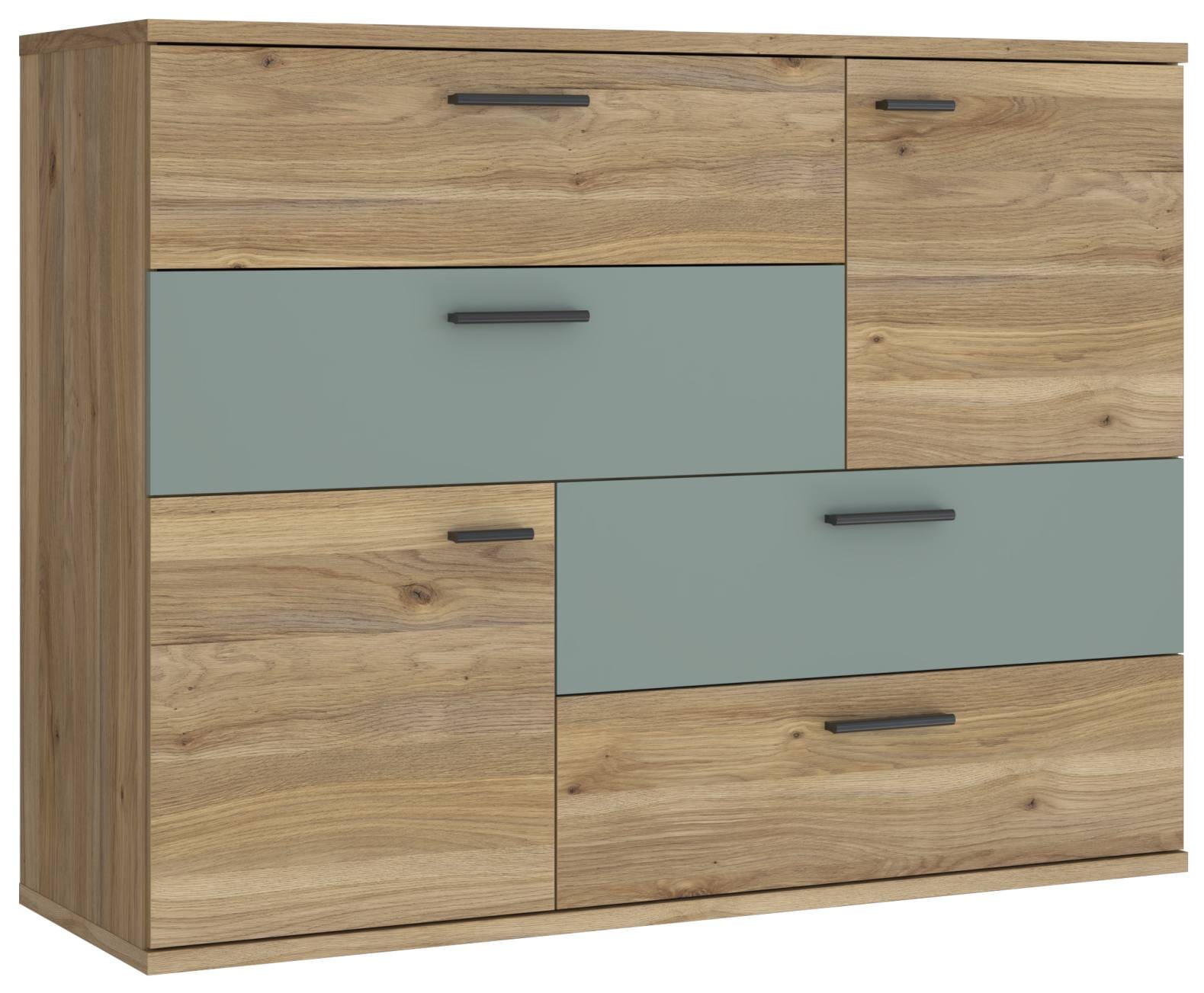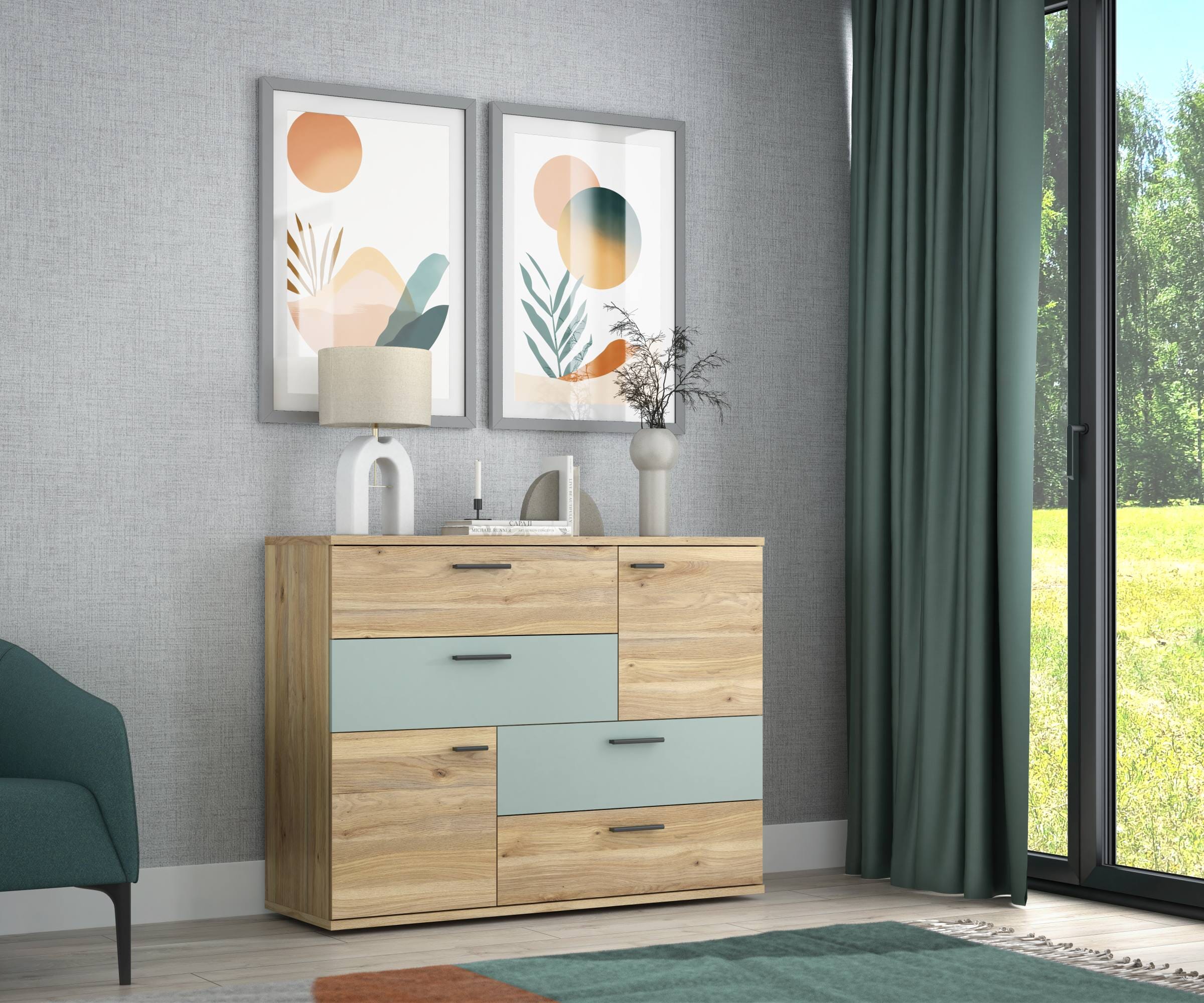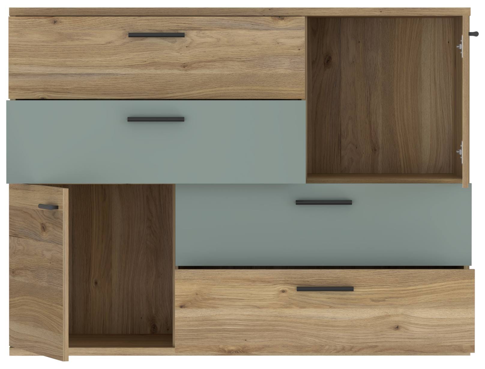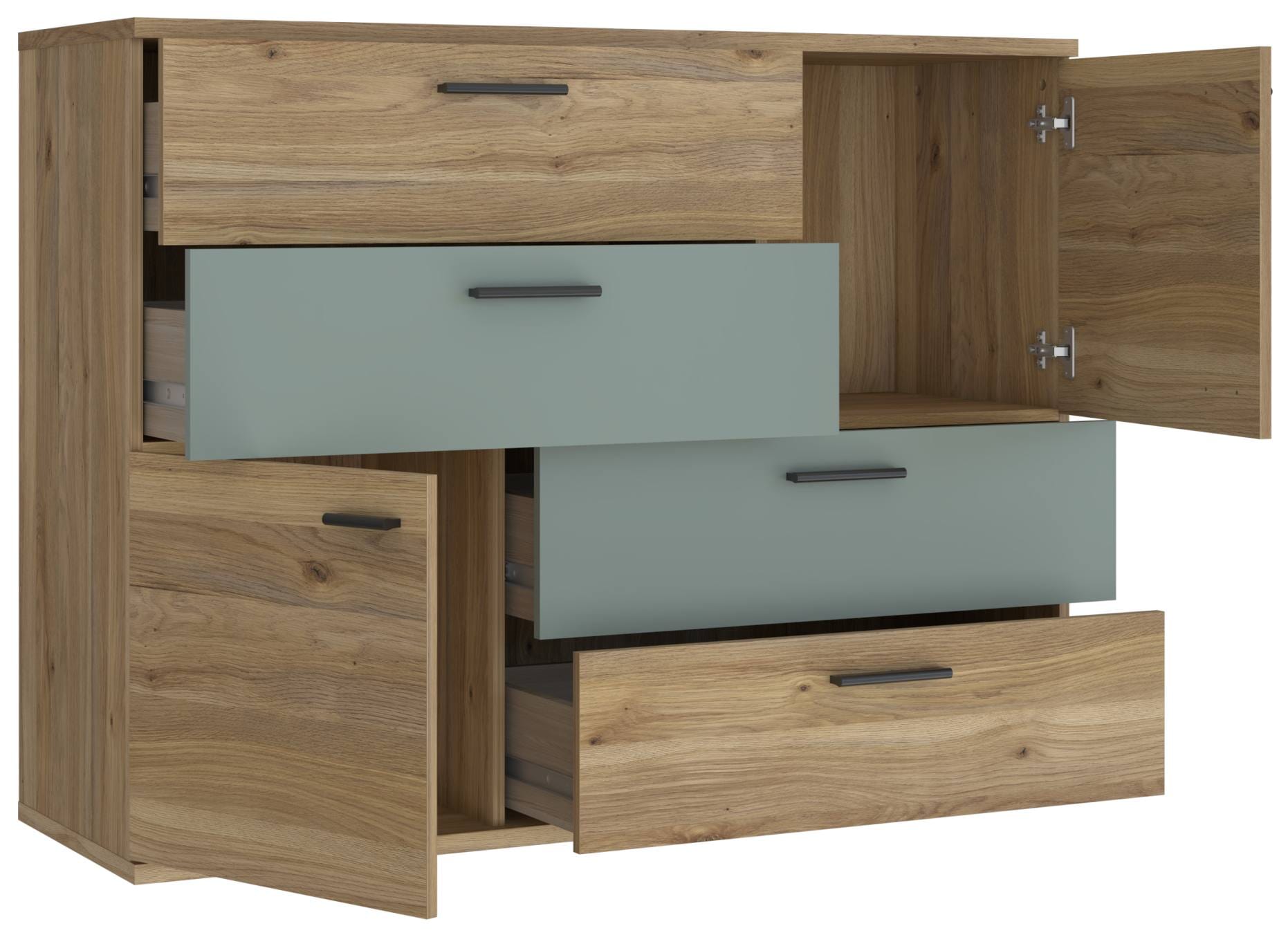 Kommode SKIVE Optik: Mauvella Eiche / Sage Green 2-trg. 4 Schubladen