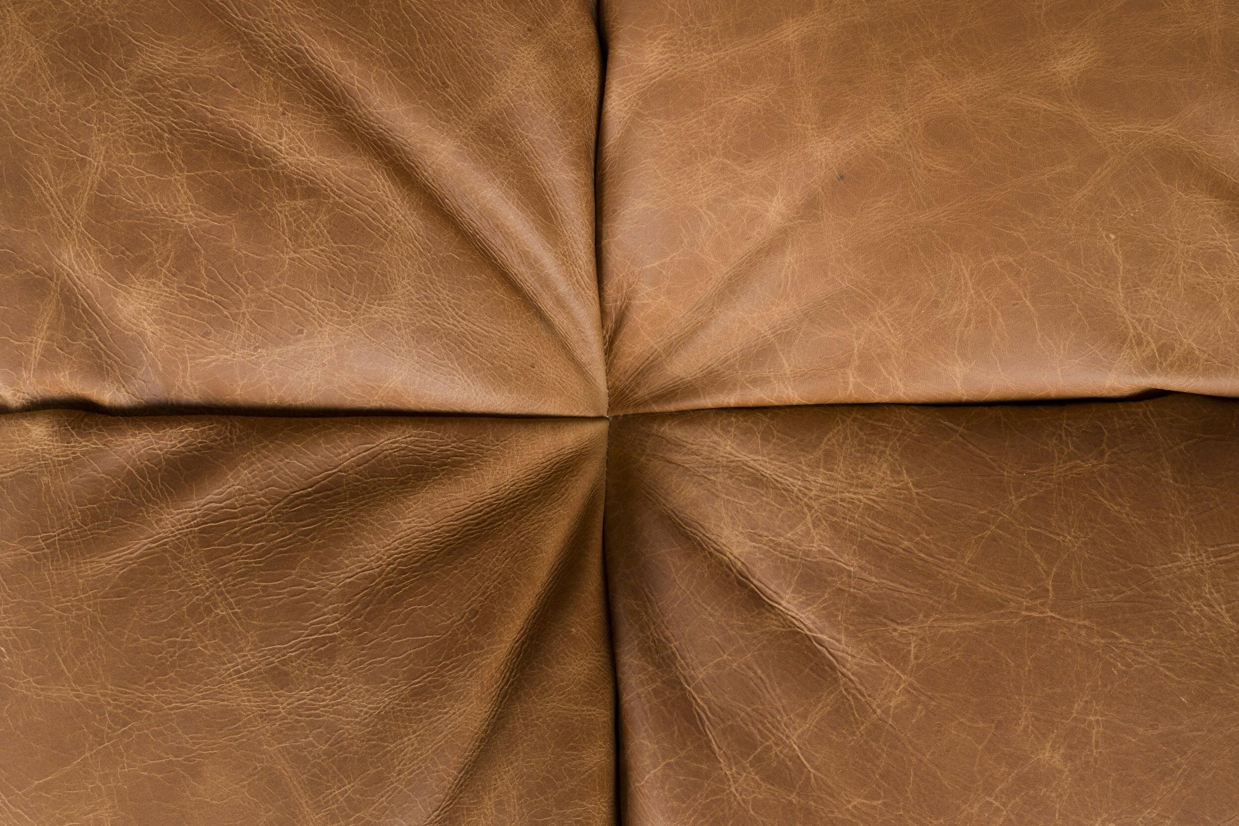 Der charmante Retro-Look, geprägt durch quadratische Steppung und die tiefen Nuancen der Lederpolsterung, macht es zu einem wahren Hingucker. Nutzen Sie ein einzelnes Element als bequemen Sessel oder kombinieren Sie mehrere Elemente, um Platz für die ganze Familie zu schaffen. Die Möglichkeiten sind nahezu grenzenlos und bieten Ihnen die Freiheit, Ihre Wohnlandschaft immer wieder neu zu gestalten.
