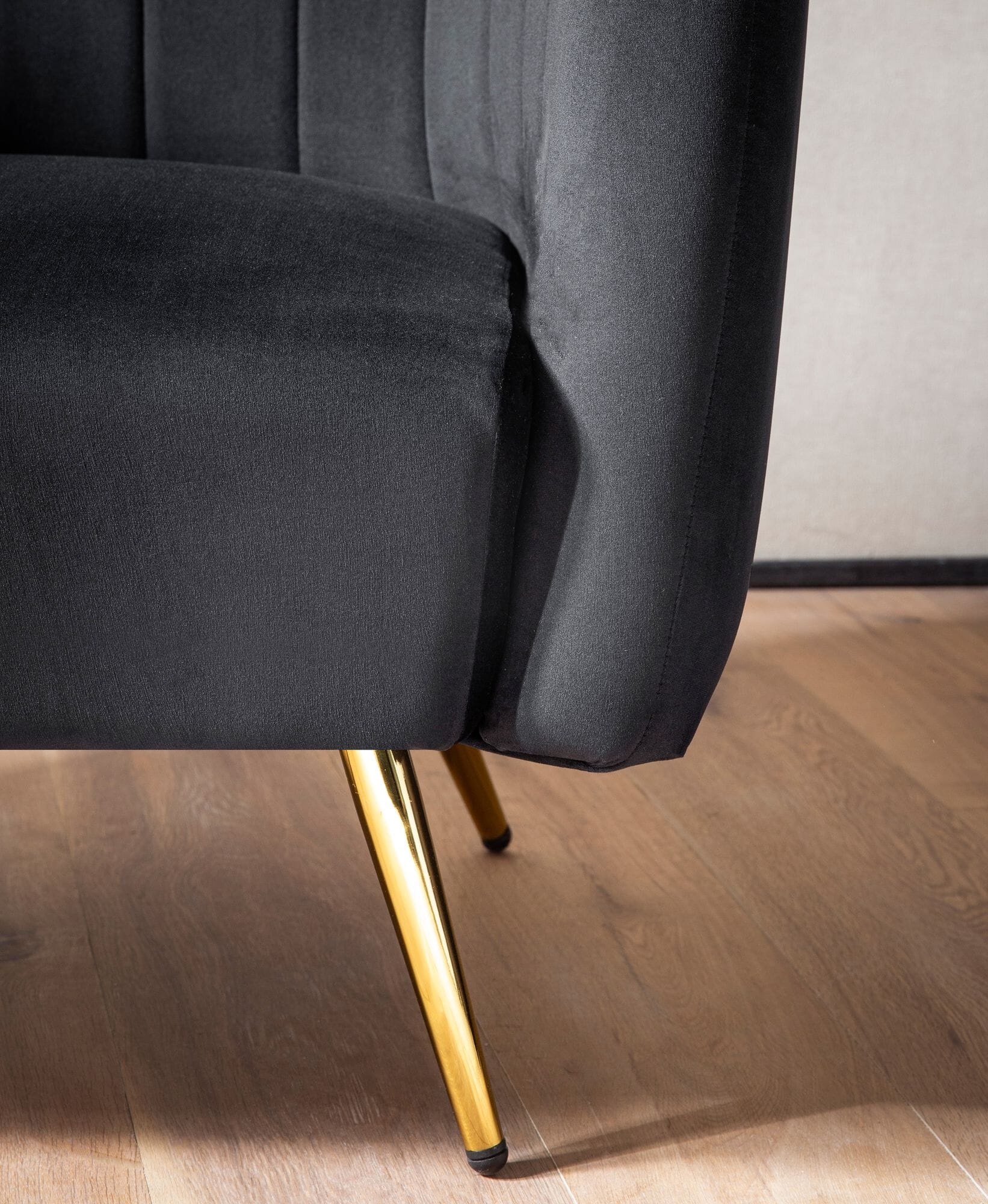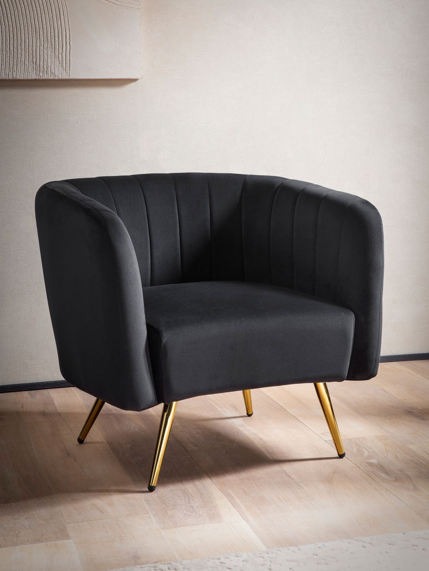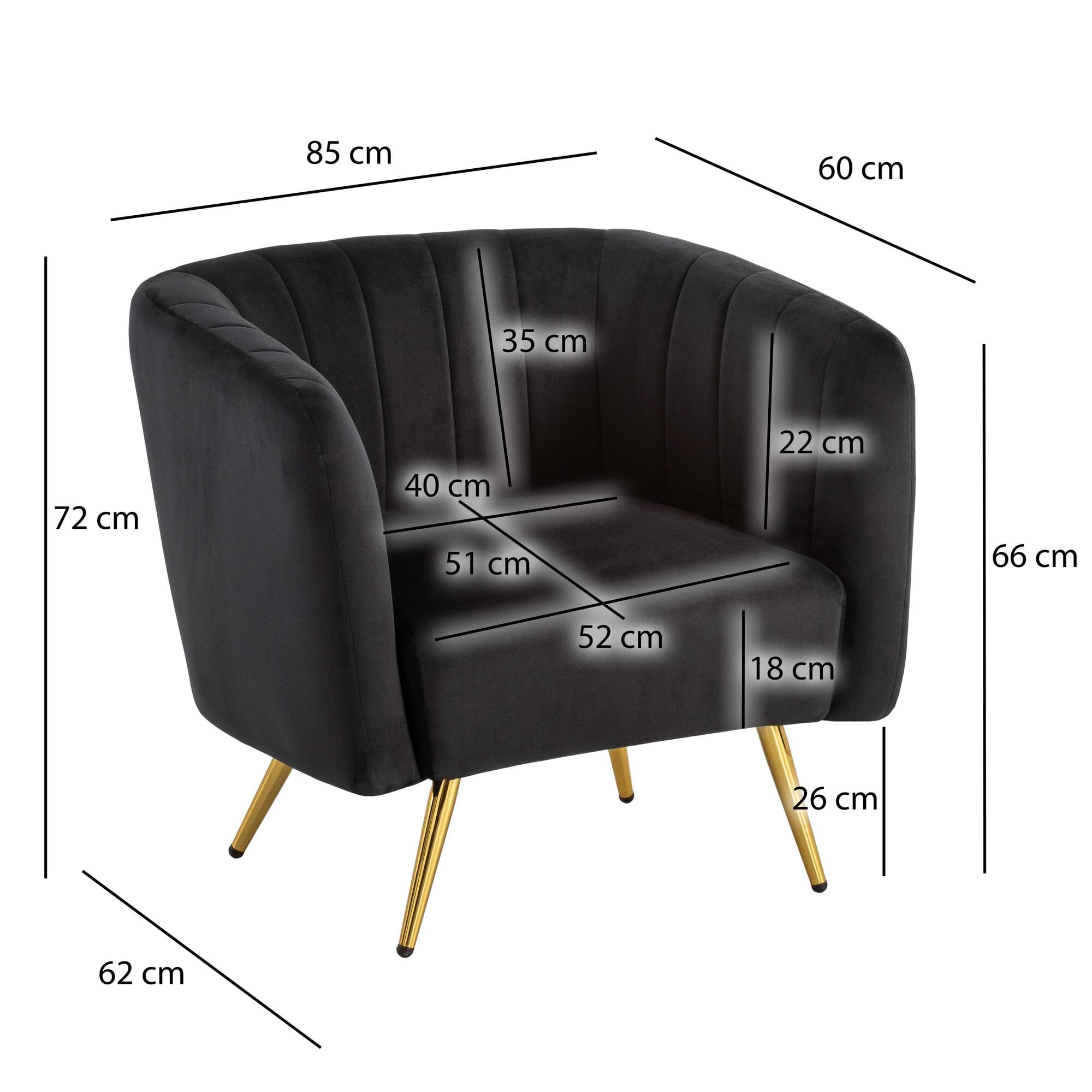 Loungesessel Samt Schwarz Metallbeine gepolstert mit Rückenlehne und Armlehnen
