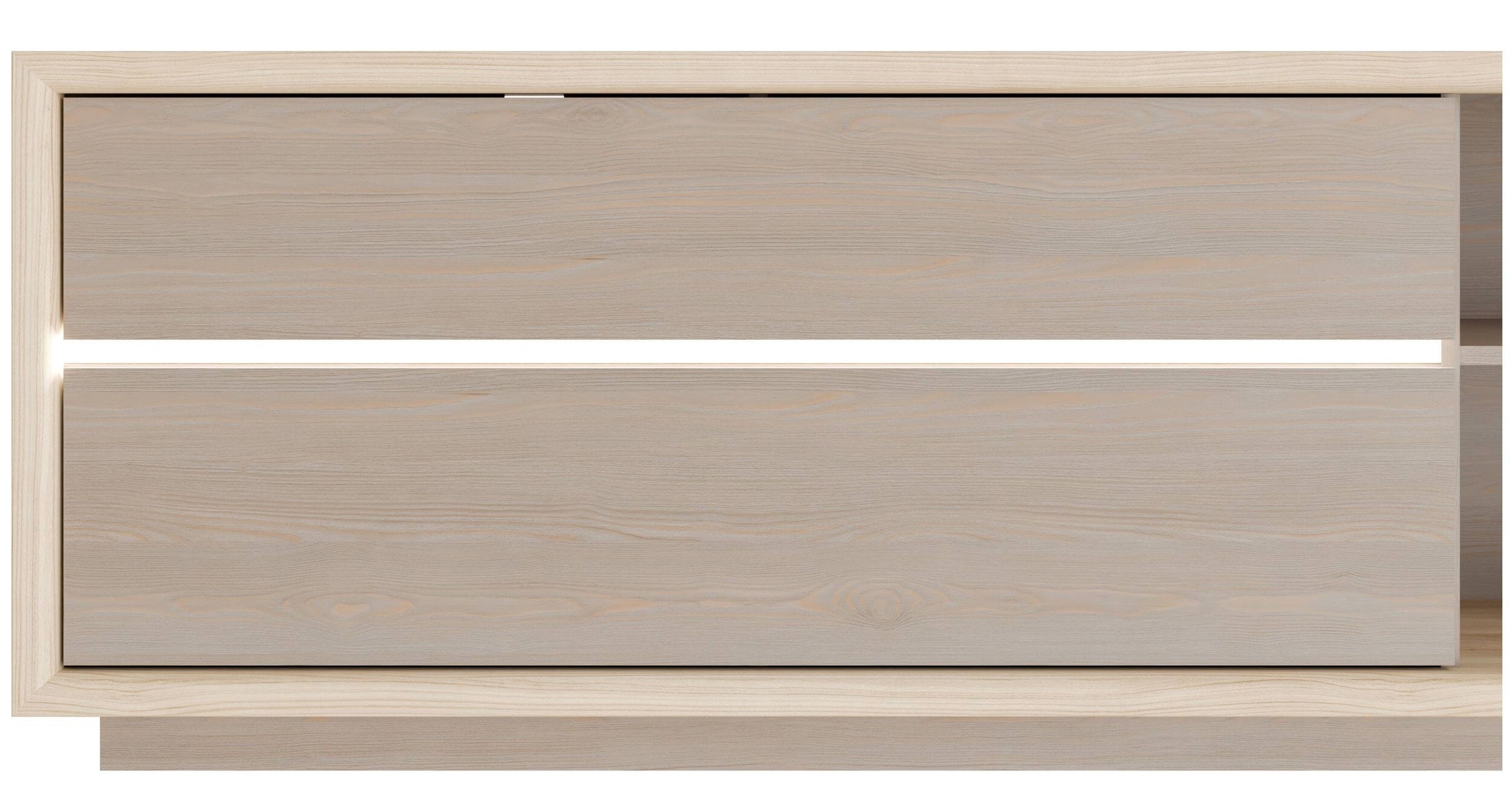 Das Modell überzeugt vor allem durch eine auffallende Gestaltung der Fronten in angesagter Imbiah Pine, begleitet von einem weissen LED-Leuchtstreifen. In den 2-geteilten Schubkästen mit Vollauszug aus Metall erwarten Sie jede Menge Stauraum, sodass Sie neben den Utensilien für das Fernsehgerät weitere Ausstattungen aufbewahren können. Kombinieren Sie das Lowboard mit weiteren Möbeln. Zum Öffnen der Schubladen greifen sie einfach an die abgeschrägte Kante.