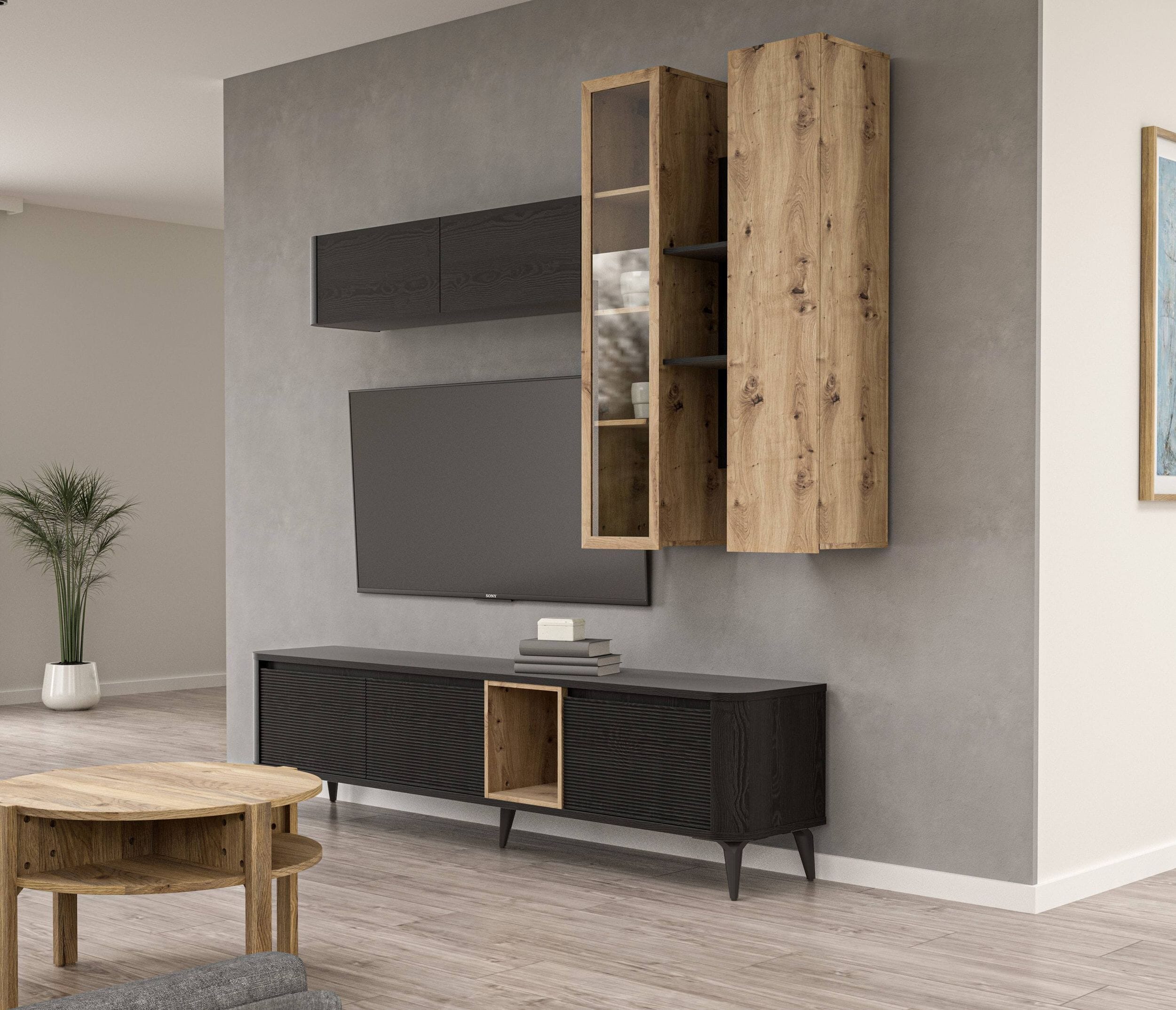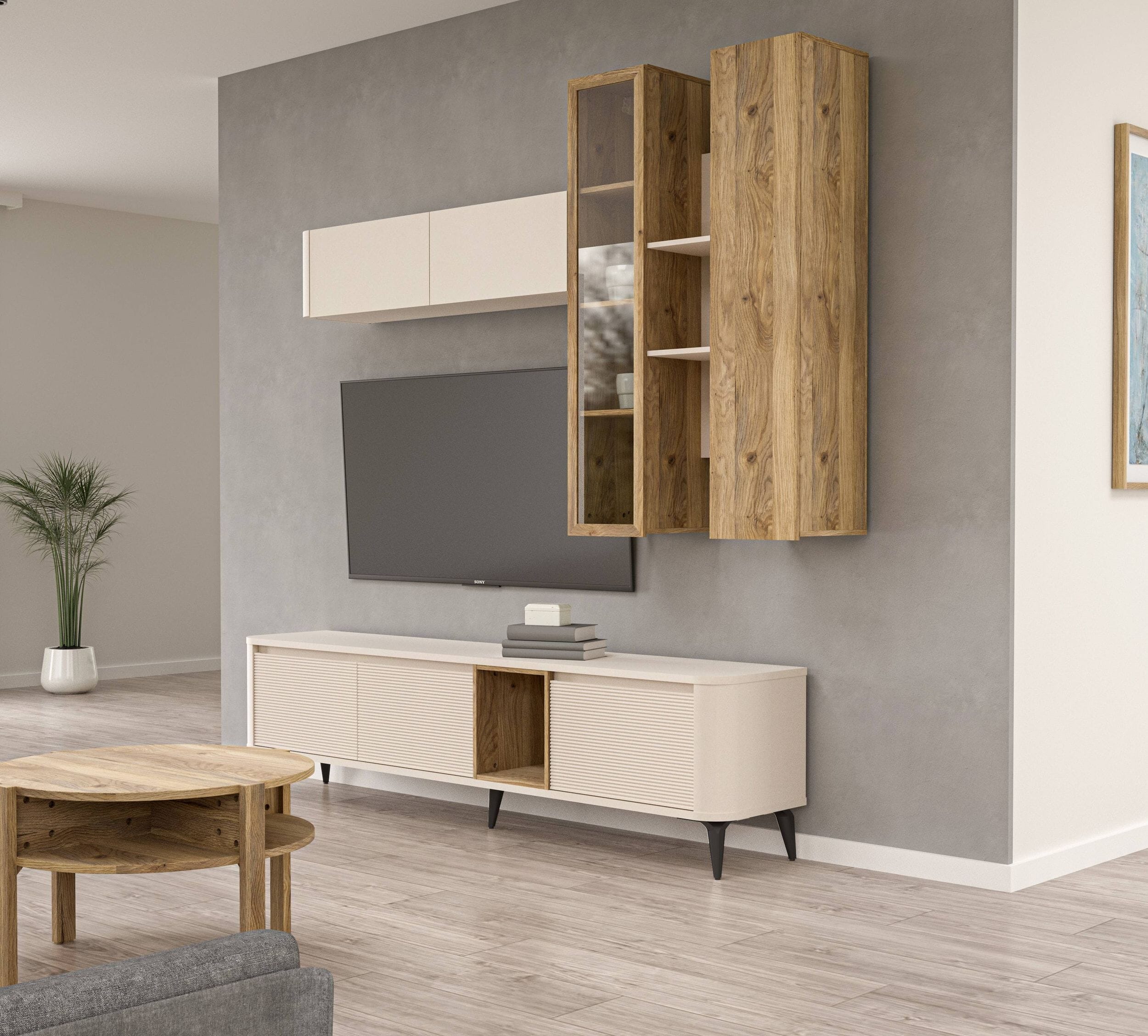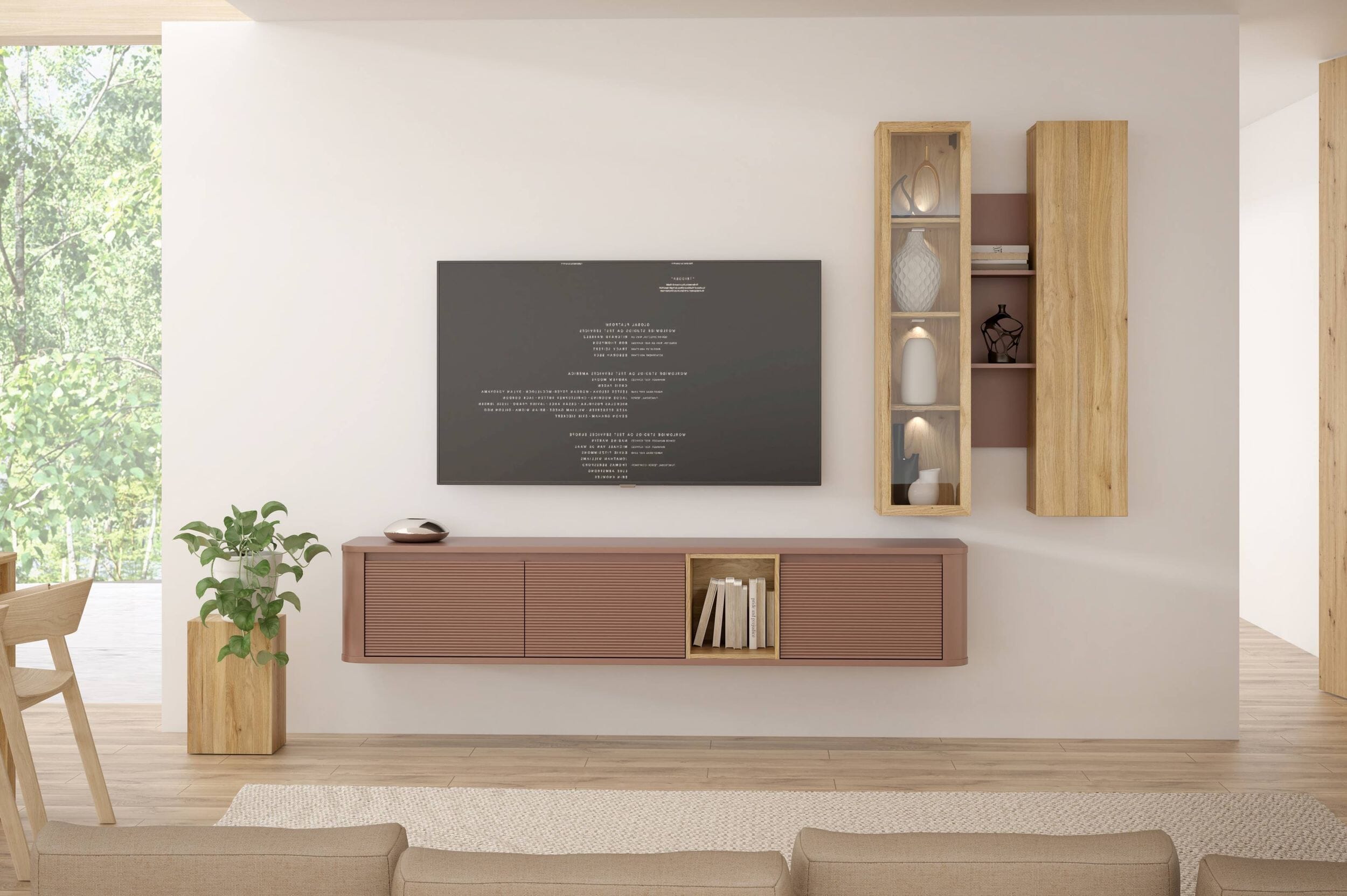 Bei der Farbgebung haben Sie die Wahl. Mauvella Eiche, kombiniert mit mattem Terracotta oder Sand, oder Artisan Eiche mit dunkler Cabezone Eiche. So entstehen viele Kombinationsmöglichkeiten mit bestehenden Möbeln. Werten Sie Ihr Wohnzimmer gekonnt auf.