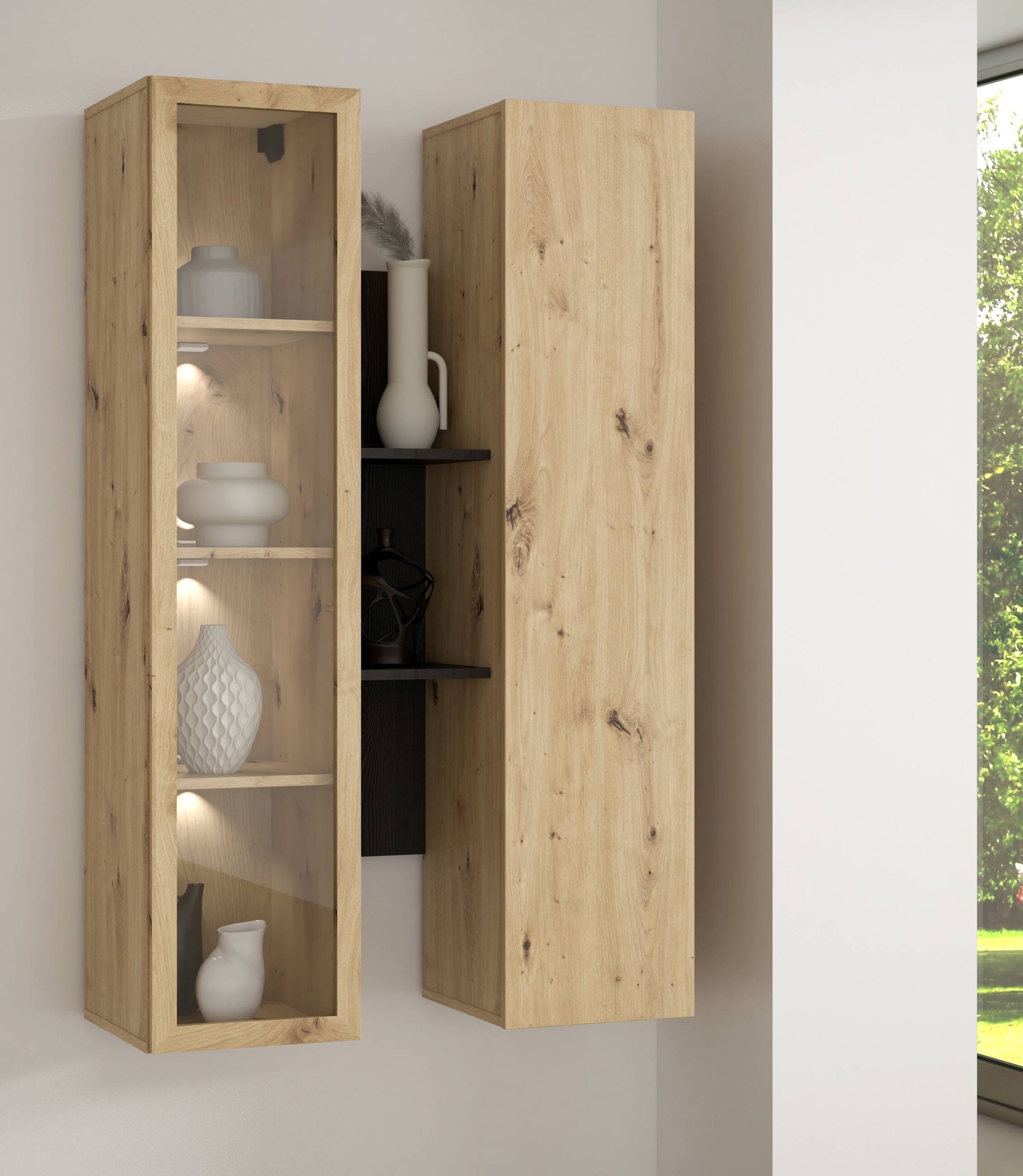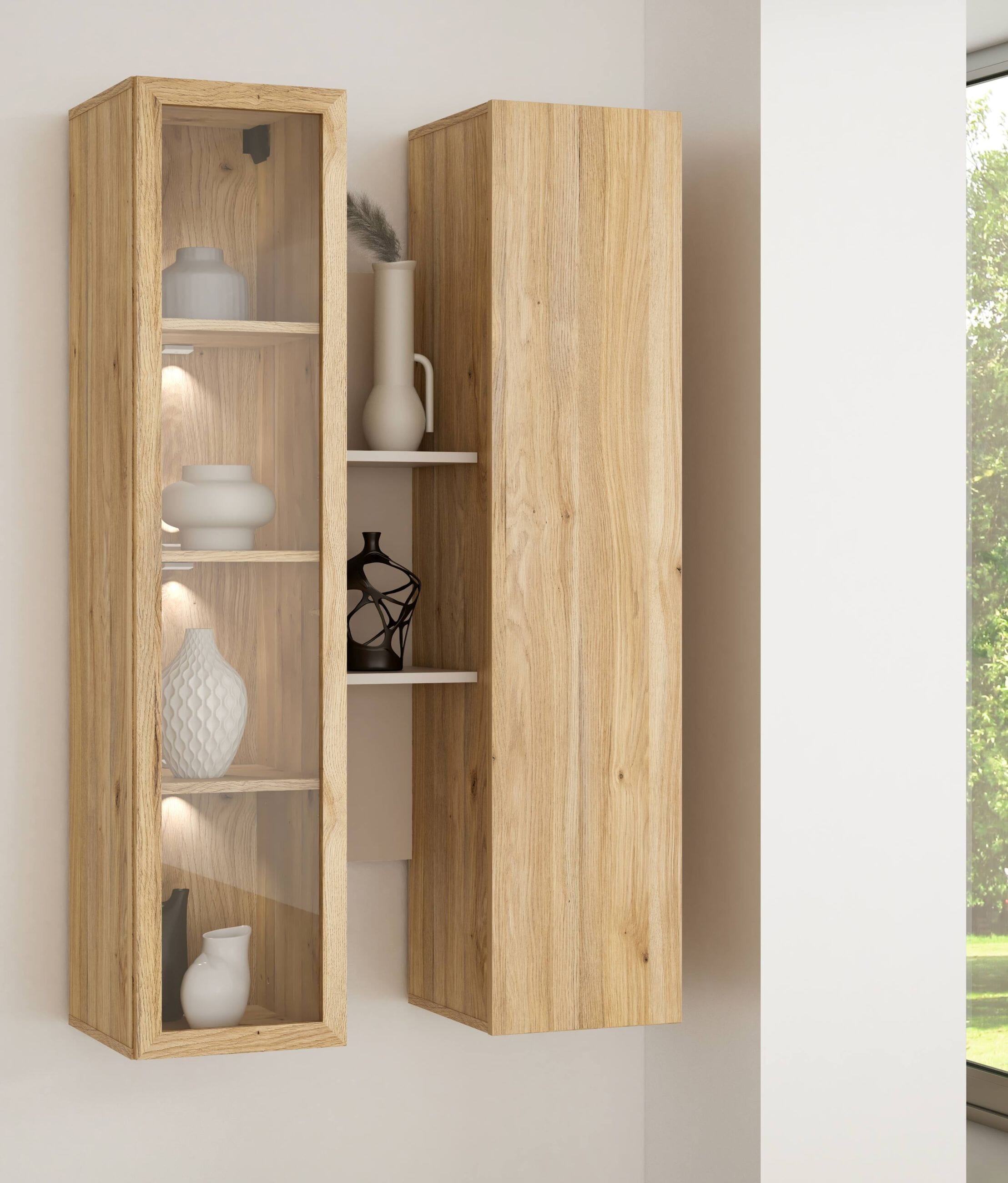 Hängevitrine Wandregal BREATHTAKER 2 Türen Mauvella Eiche und Sand, von Forte