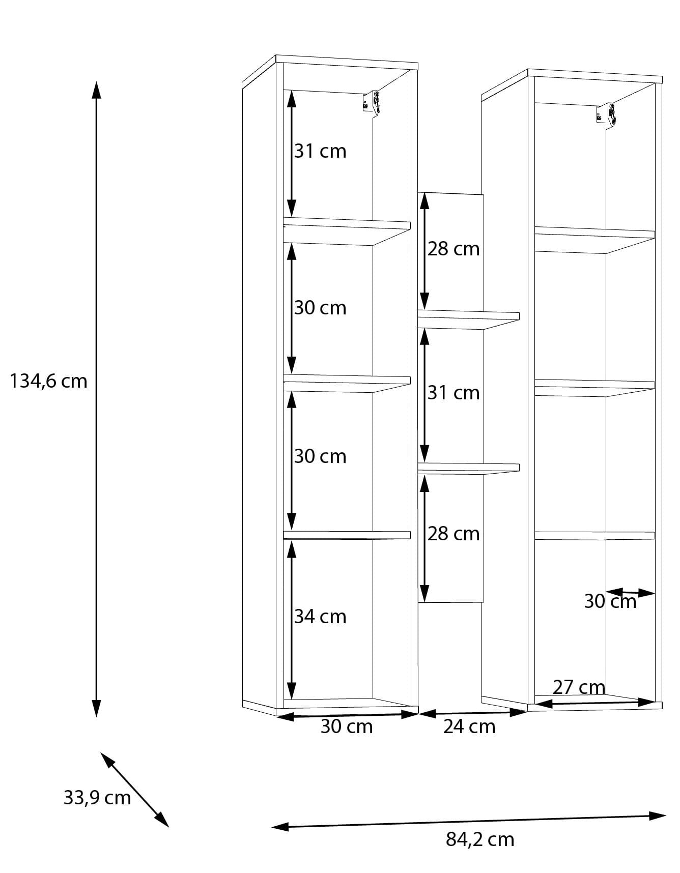 • Maße: B/H/T 83,4 x 135,6 x 33,9 cm