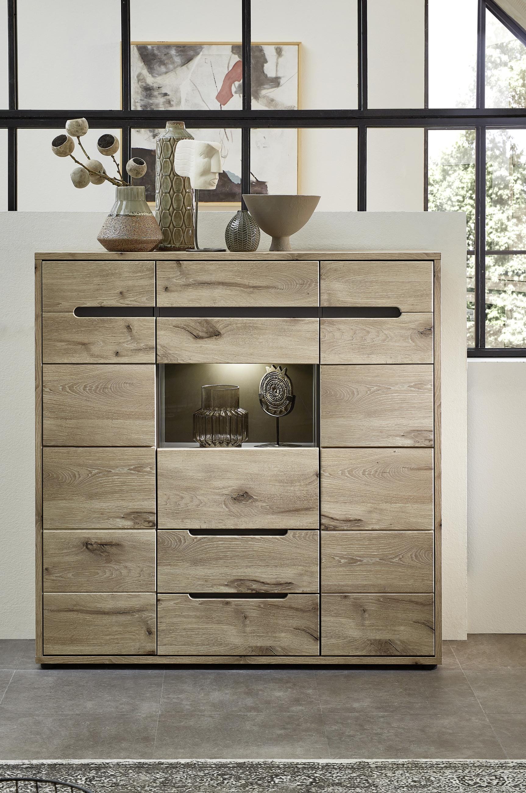 Highboard BELLANO Viking Oak Nature Nachbildung mit Graphit inkl. LED Beleuchtung