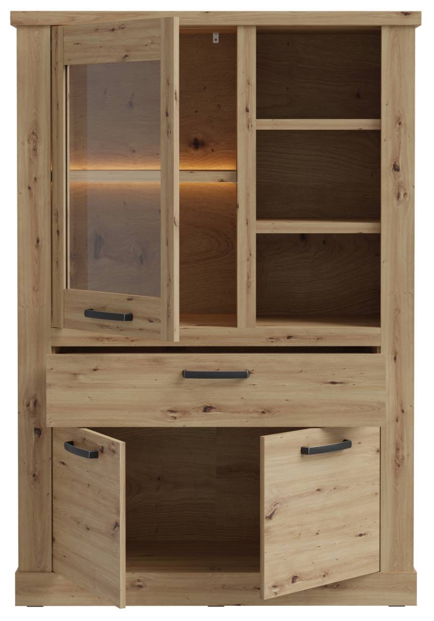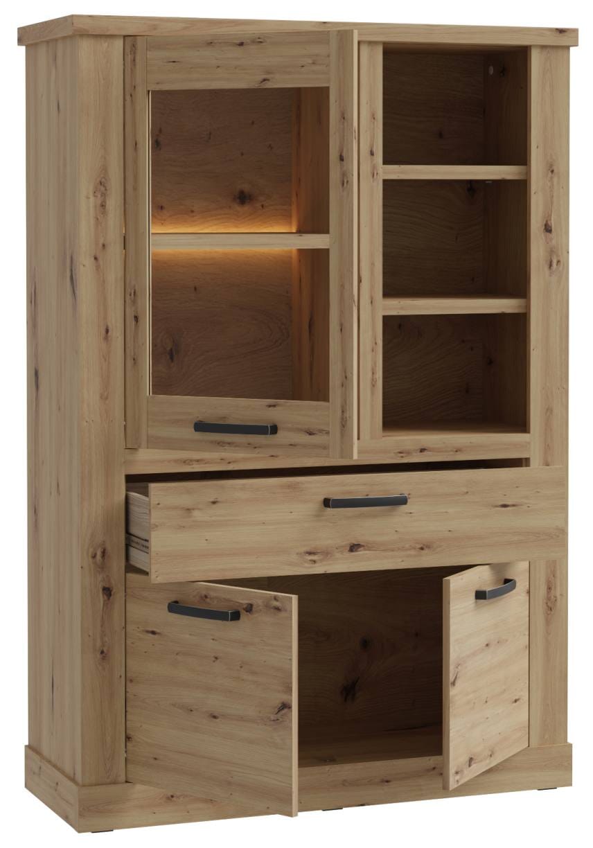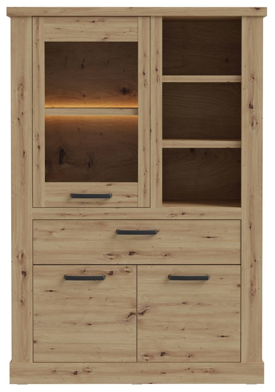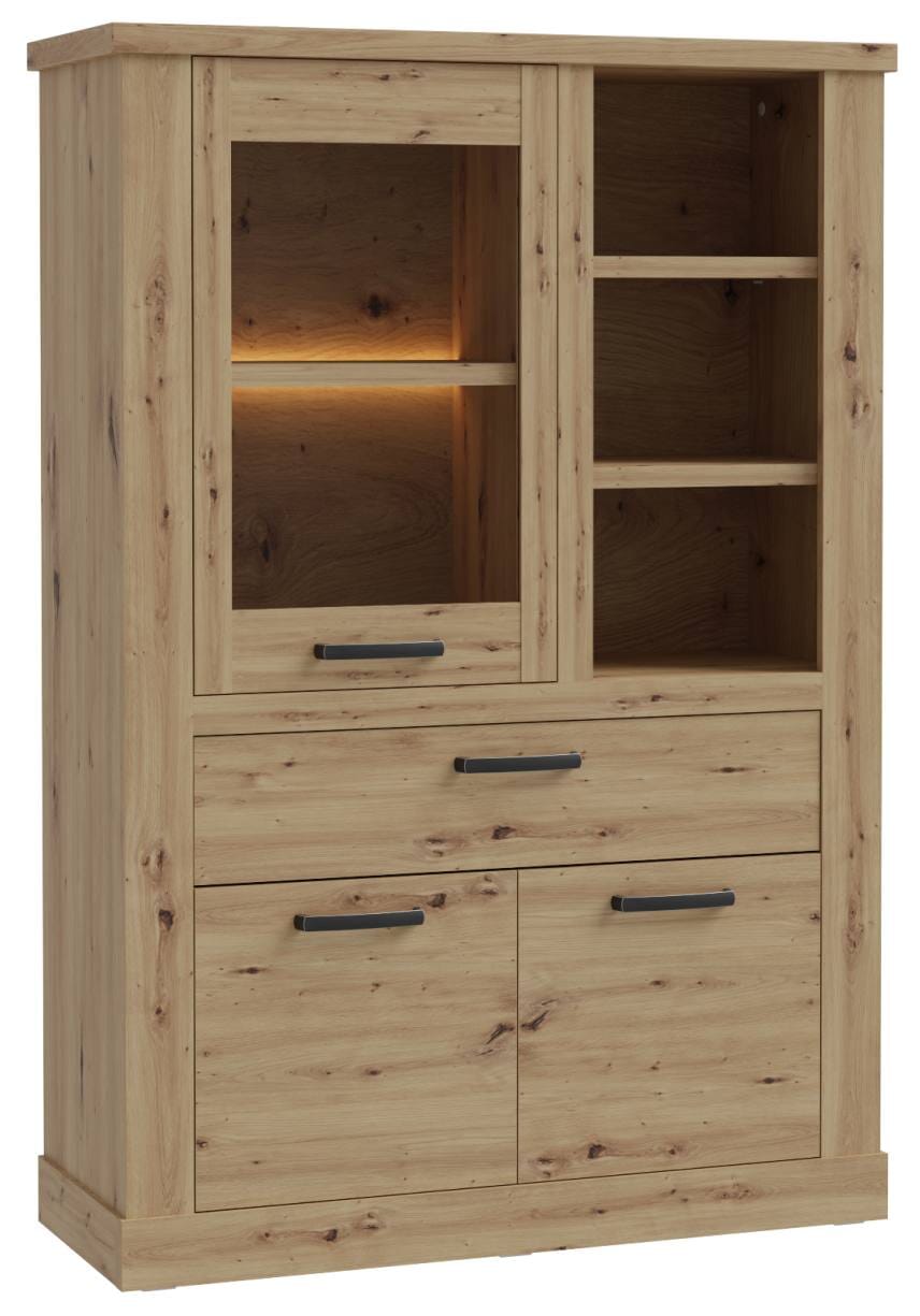 Highboard CORONA mit Beleuchtung, 3 Türen 1 Schublade, Optik Artisan Eiche