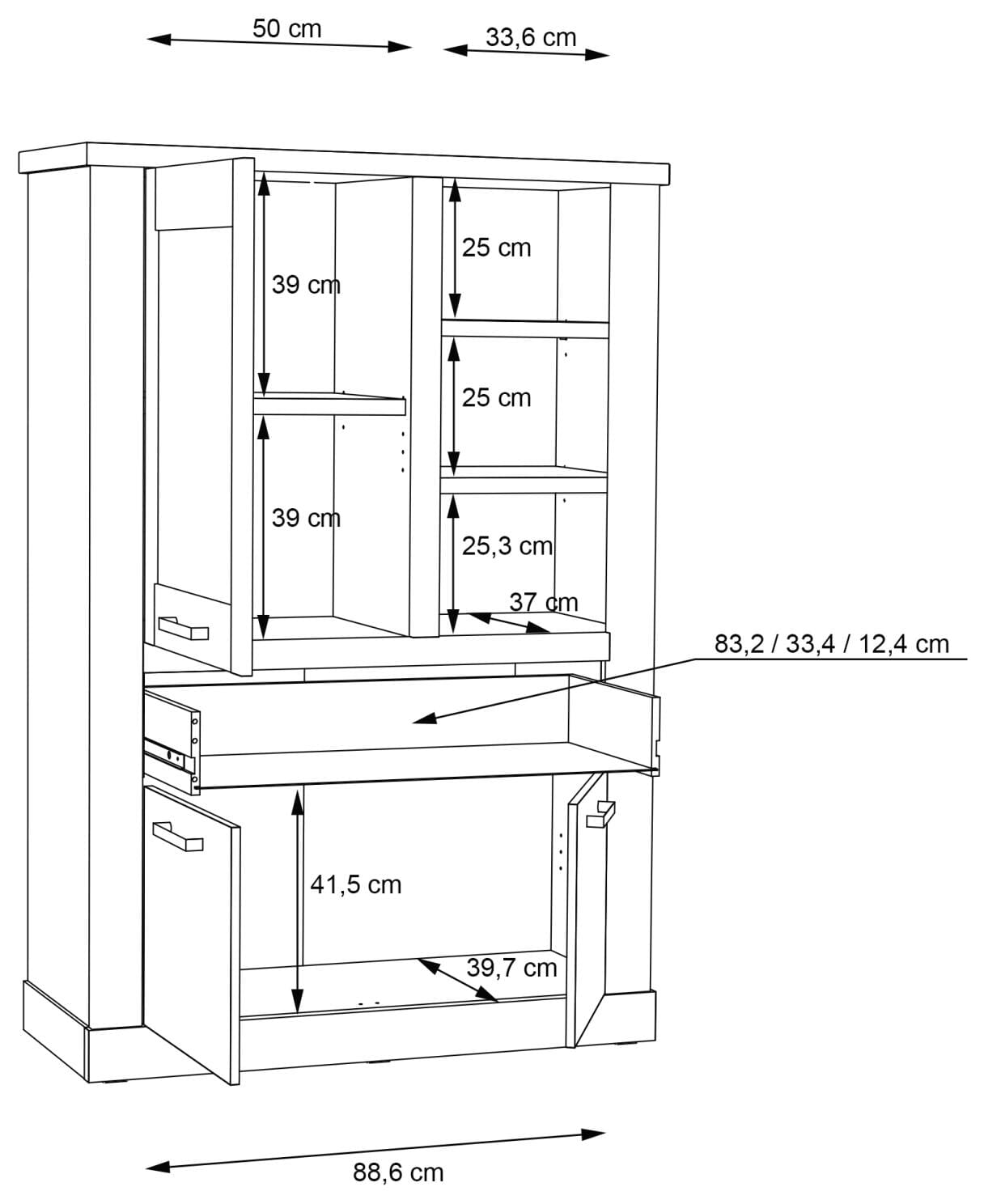 - Höhe der Schubladenfront: ca. 190 mm