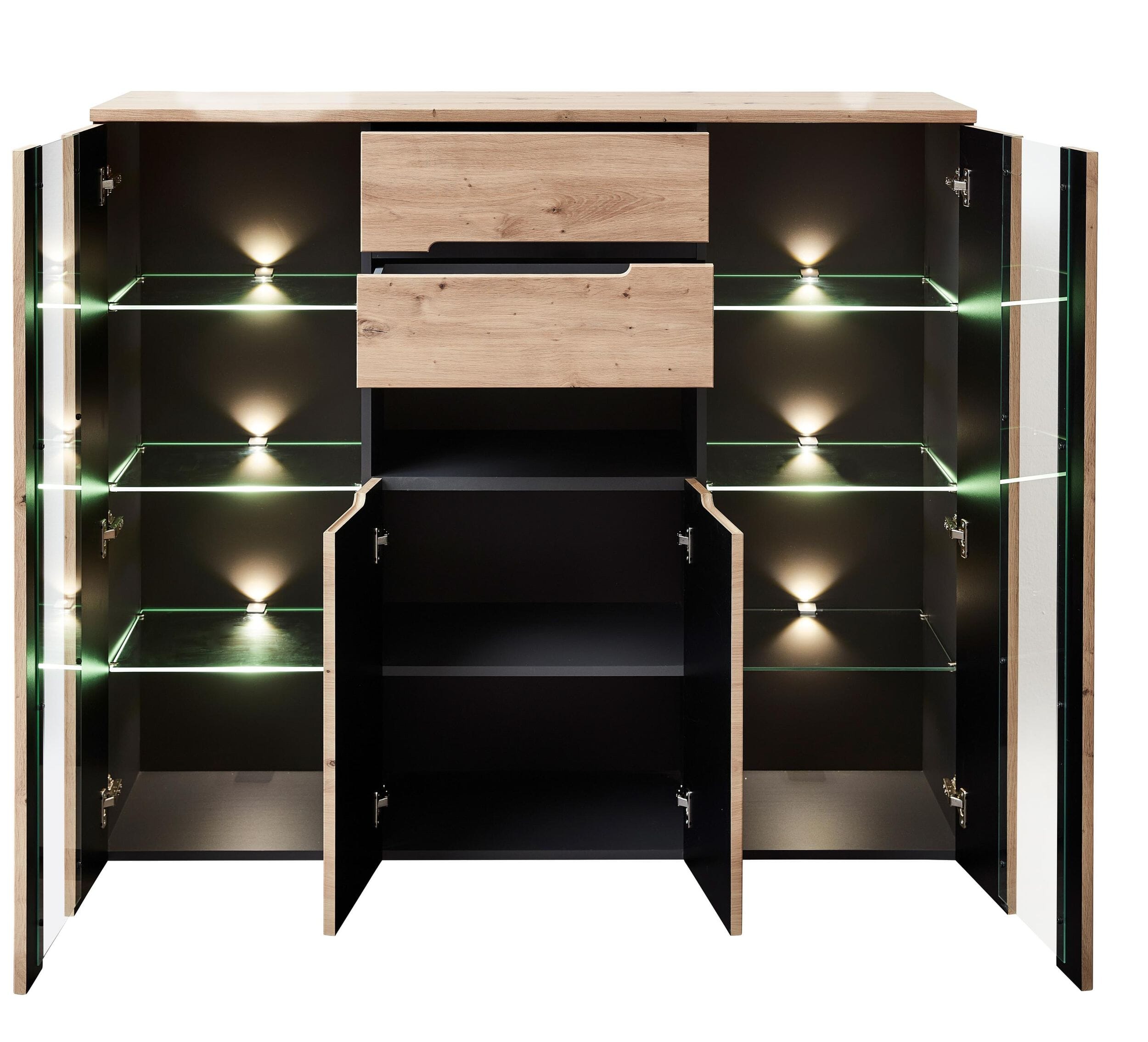 Highboard Memphis Artisan Eiche Graphit Nachbildung inkl. LED Beleuchtung