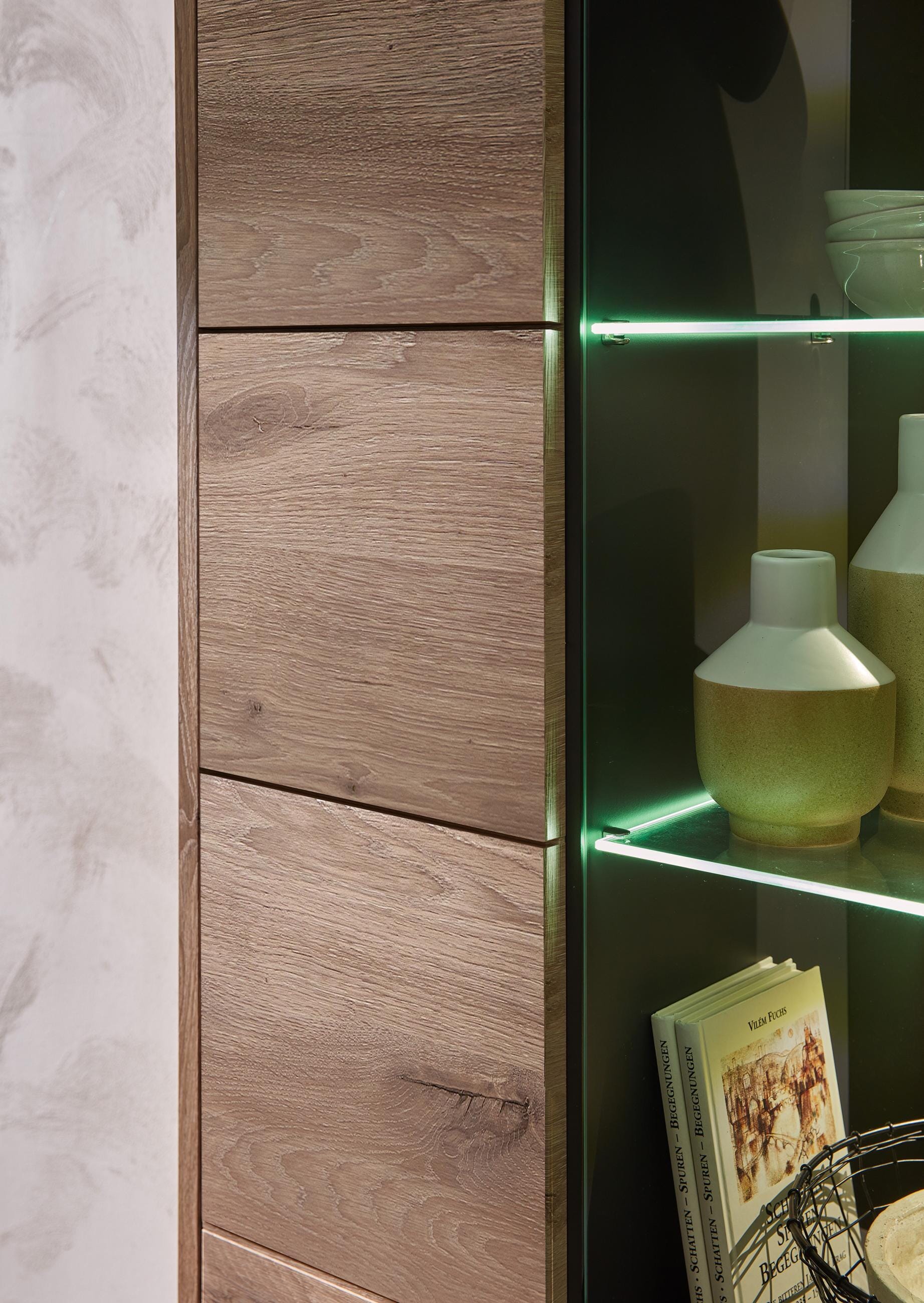 Vitrine BELLANO Viking Oak Nature Nachbildung, innen Graphit mit LED